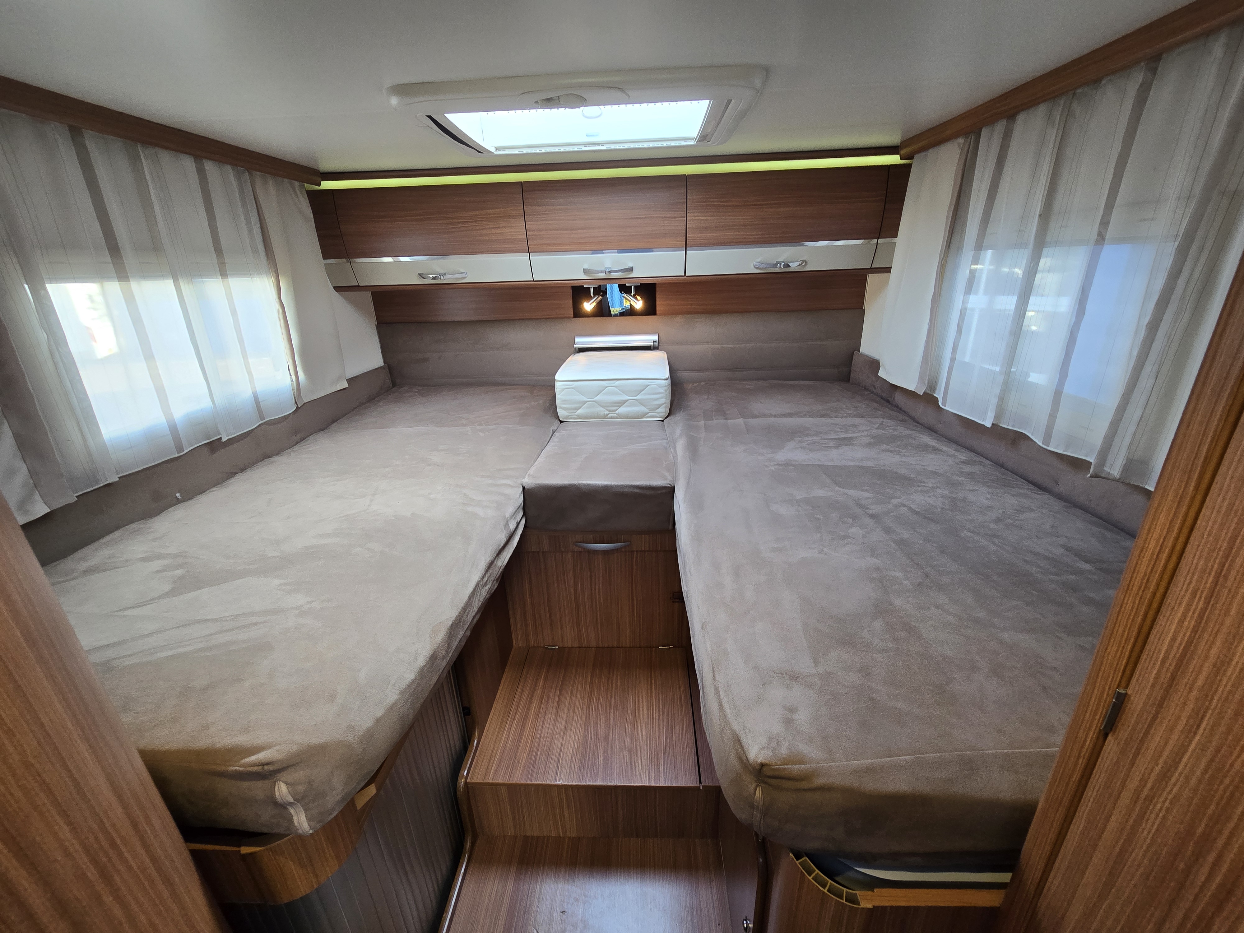 De aparte bedden waarmee de camper is uitgerust bieden een ruime slaapplek aan 2 personen. Om het u aan niets te laten ontbreken, zijn de bedden voorzien van zowel lattenbodems als traagschuimmatrassen. In de camper kunt u ook douchen. Er bevindt zich een doucheruimte naast het slaapgedeelte.