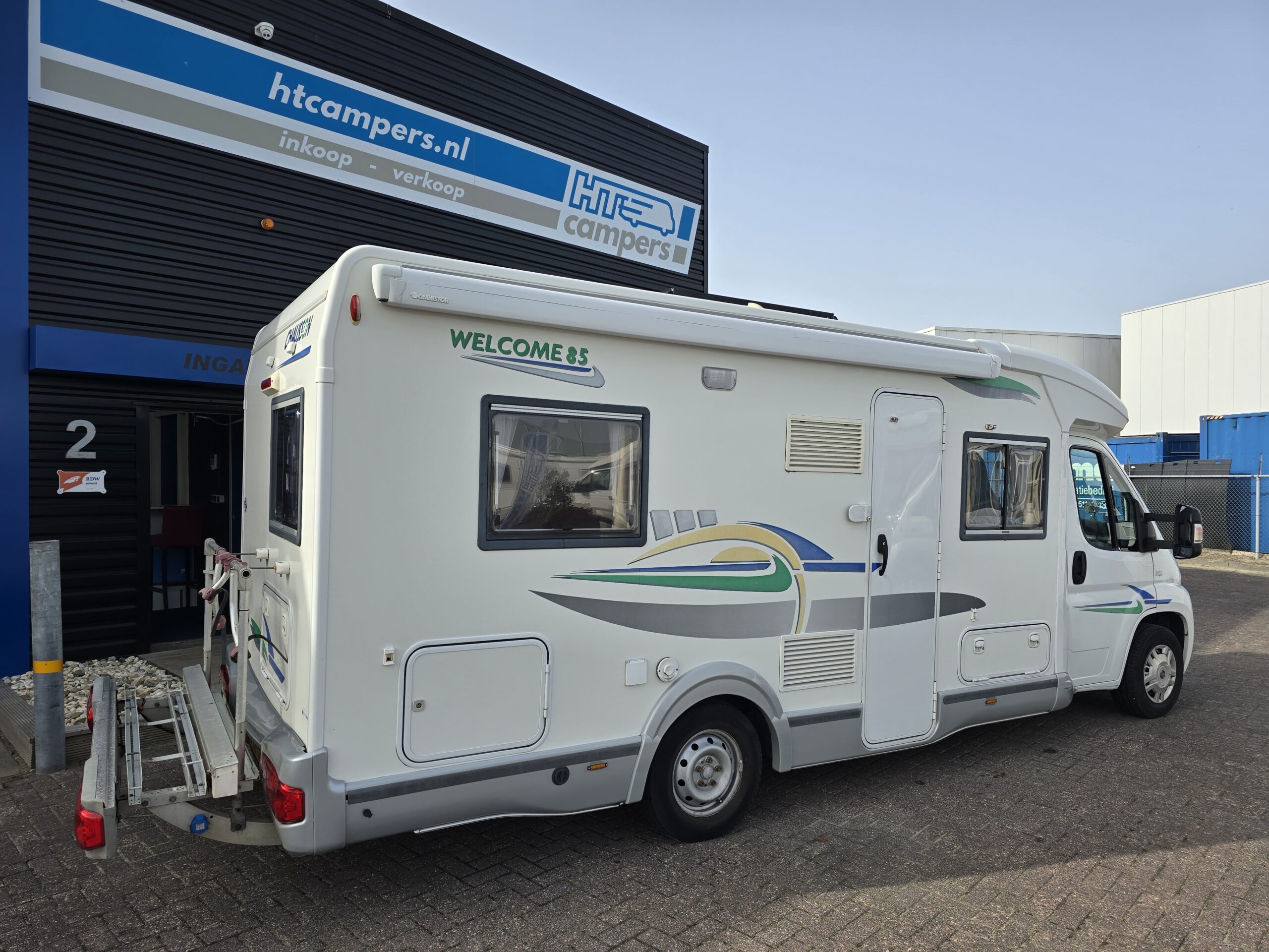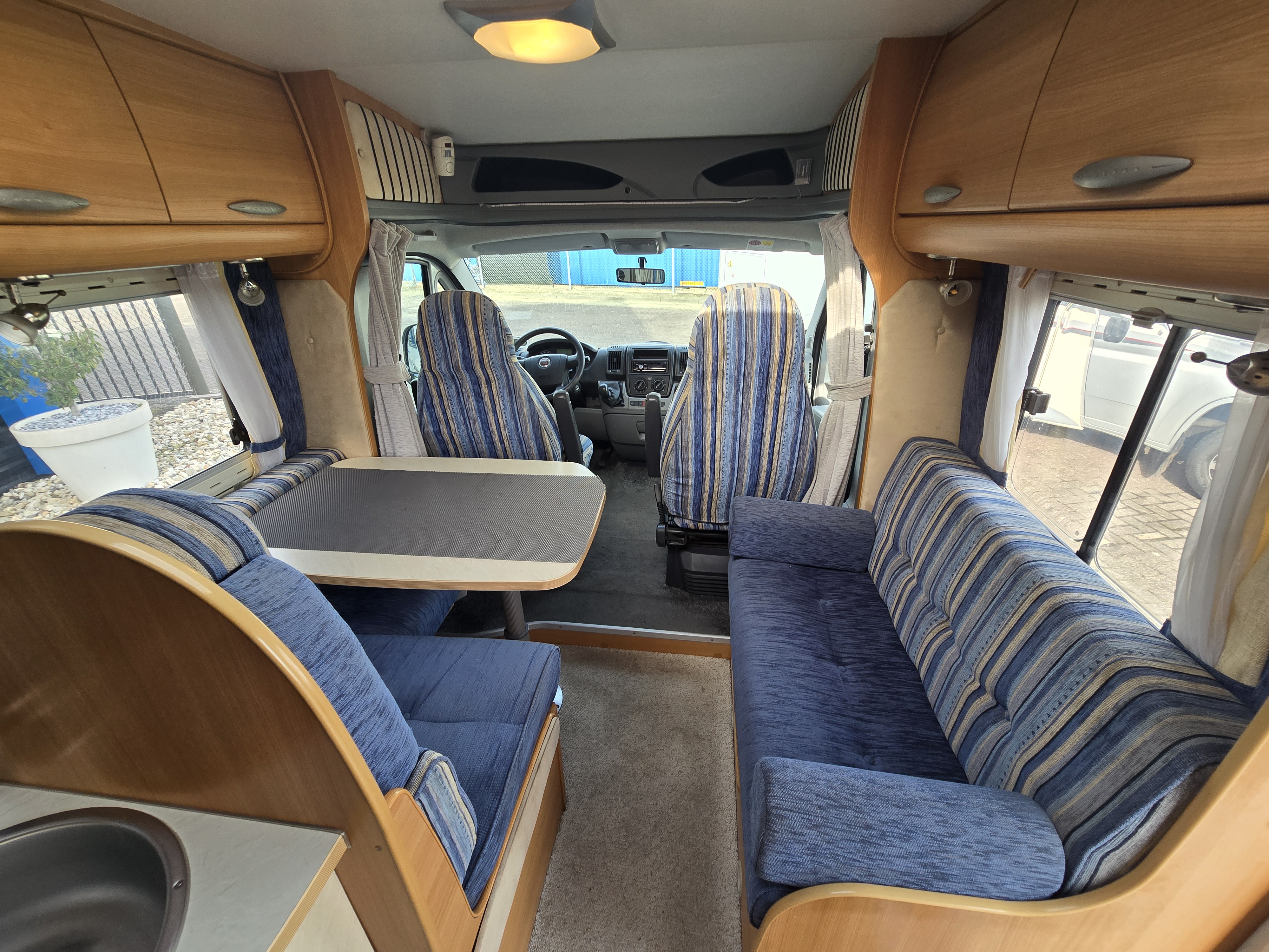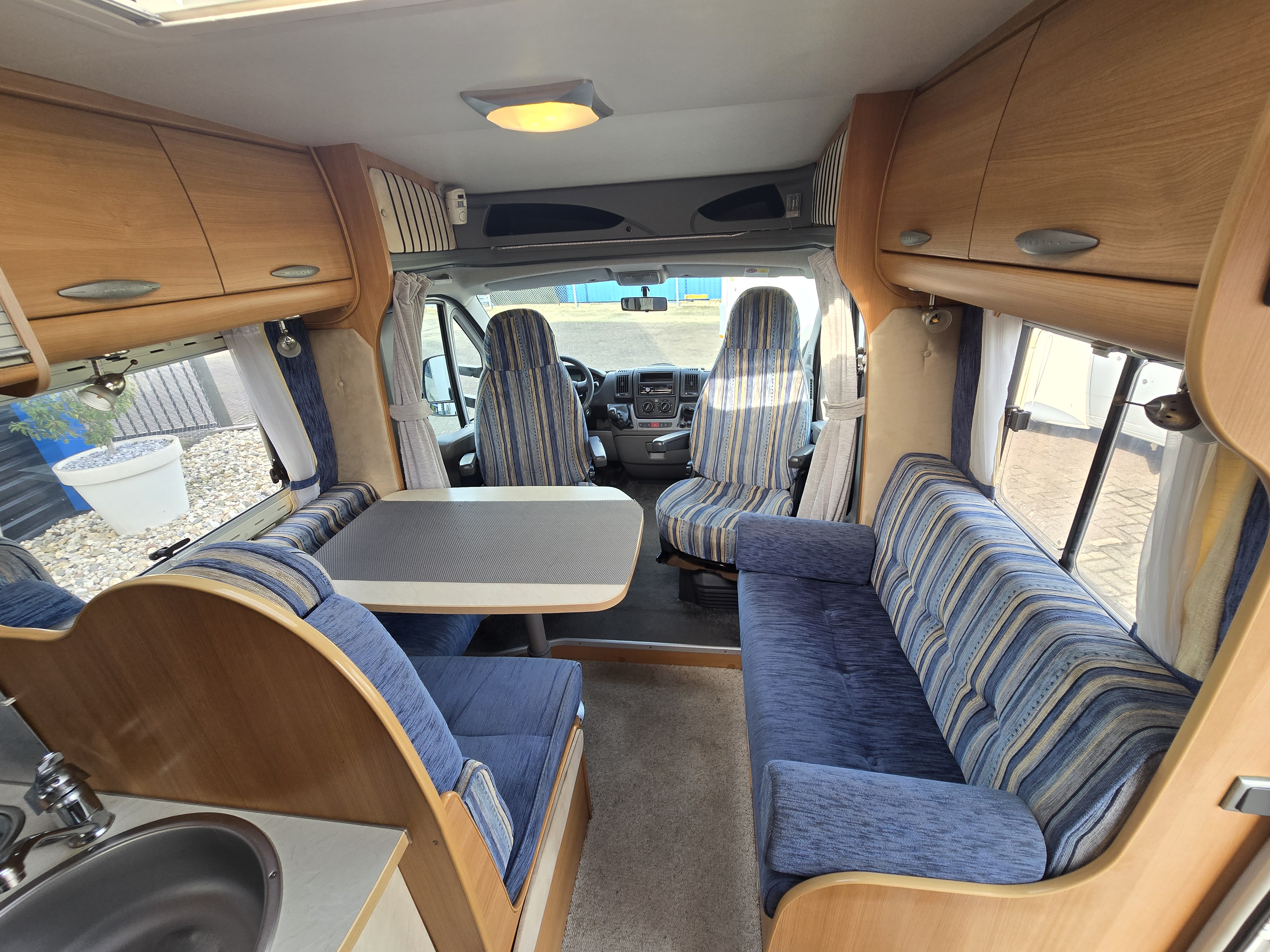 Geniet van uw vakantie en ga eropuit met deze Chausson Welcome, gebouwd in 2008. Deze kampeerwagen heeft een maximaal gewicht van 3500 kg en telt 4 slaapplaatsen. De camper is tevens uitgerust met een handig fietsenrek, zodat u uw fietsen gemakkelijk kunt meenemen naar uw vakantiebestemming.