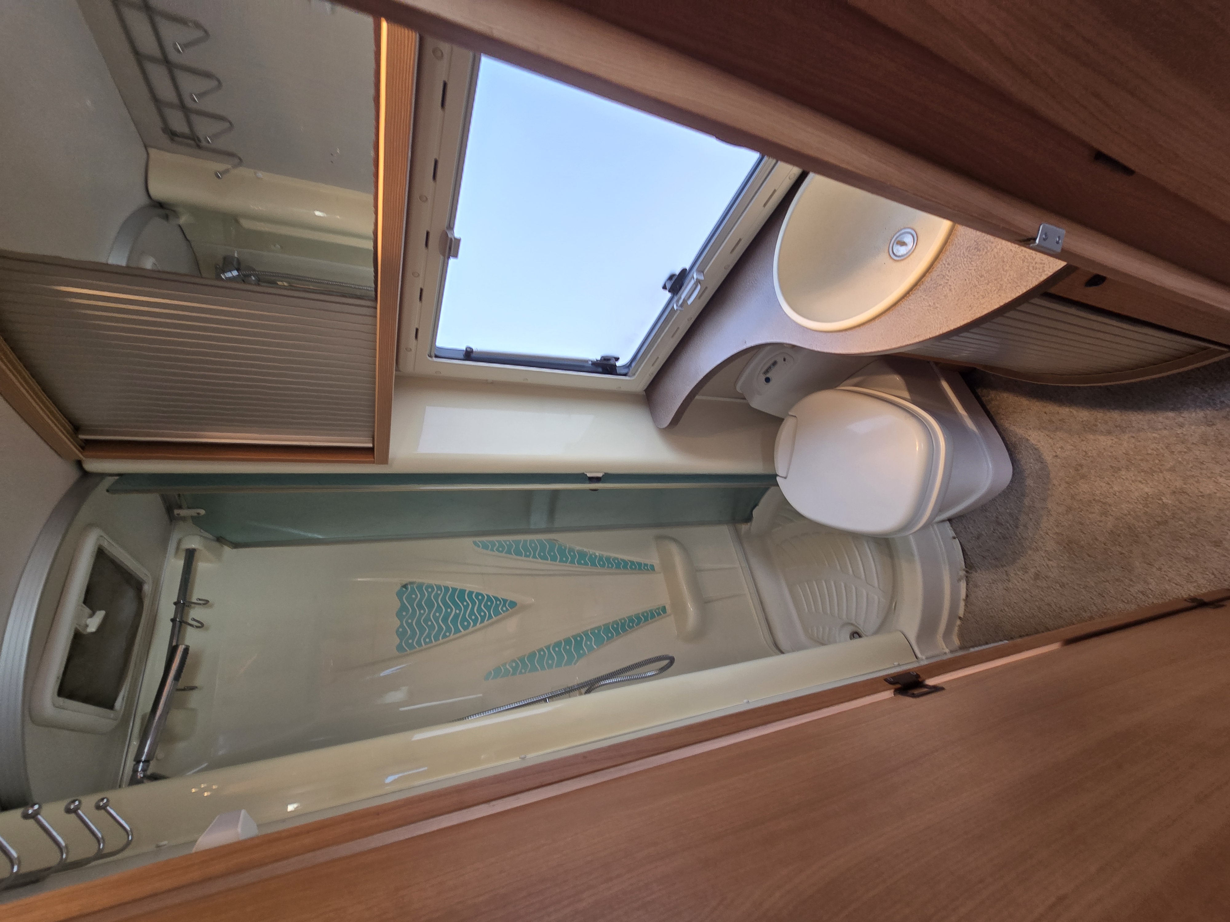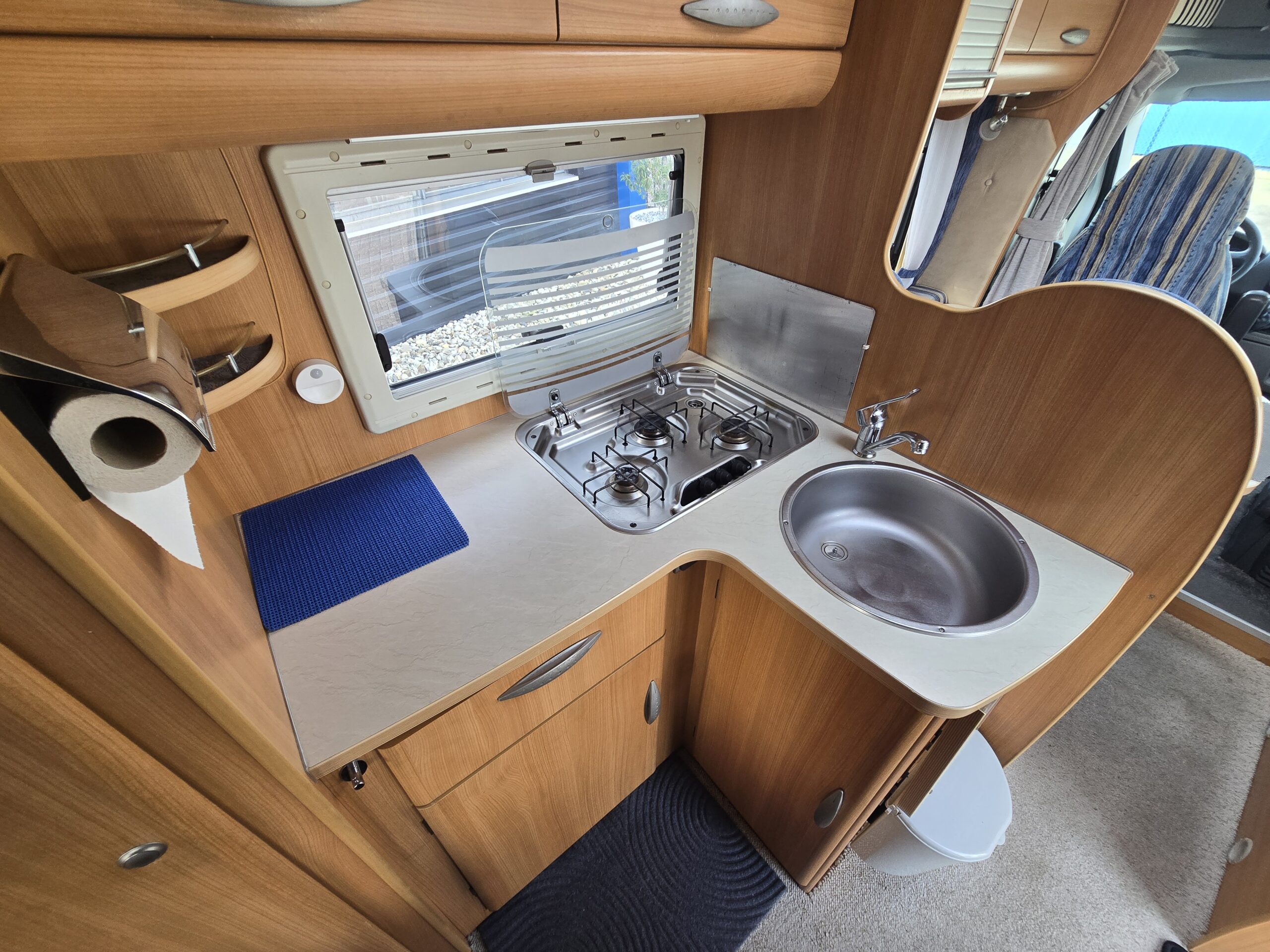 Door de praktische standaardzit, die eenvoudig tot bed kan worden omgebouwd, heeft u de nodige zit- en slaapgelegenheid. Centraal in de camper bevindt zich de middenkeuken, uitgerust met een spoelbak, kraan en 3-pits kooktoestel. De boiler, die in de camper is ingebouwd, voorziet u snel van warm water. De koelkast met vriesvak biedt voldoende ruimte voor heel uw voorraad.