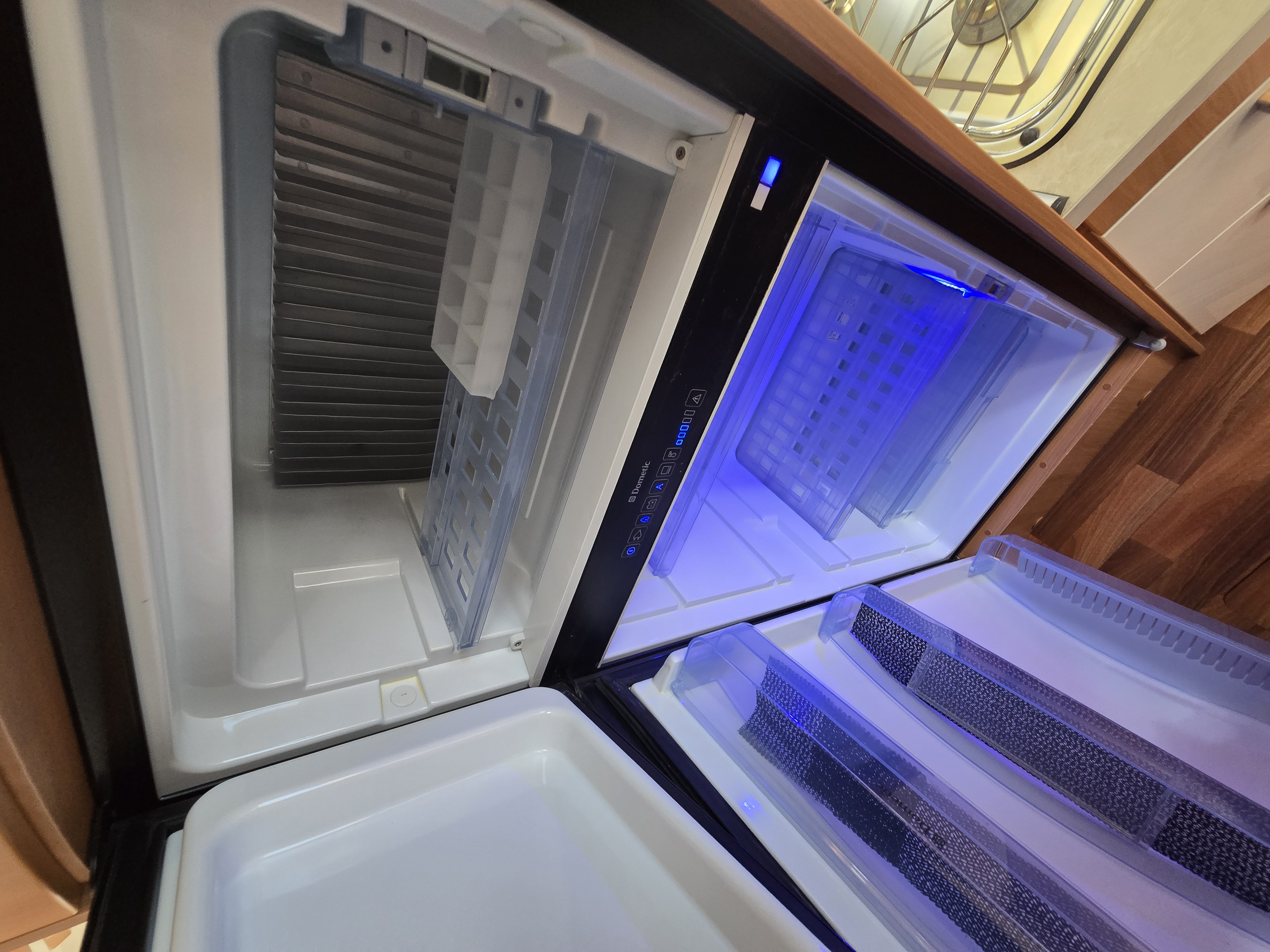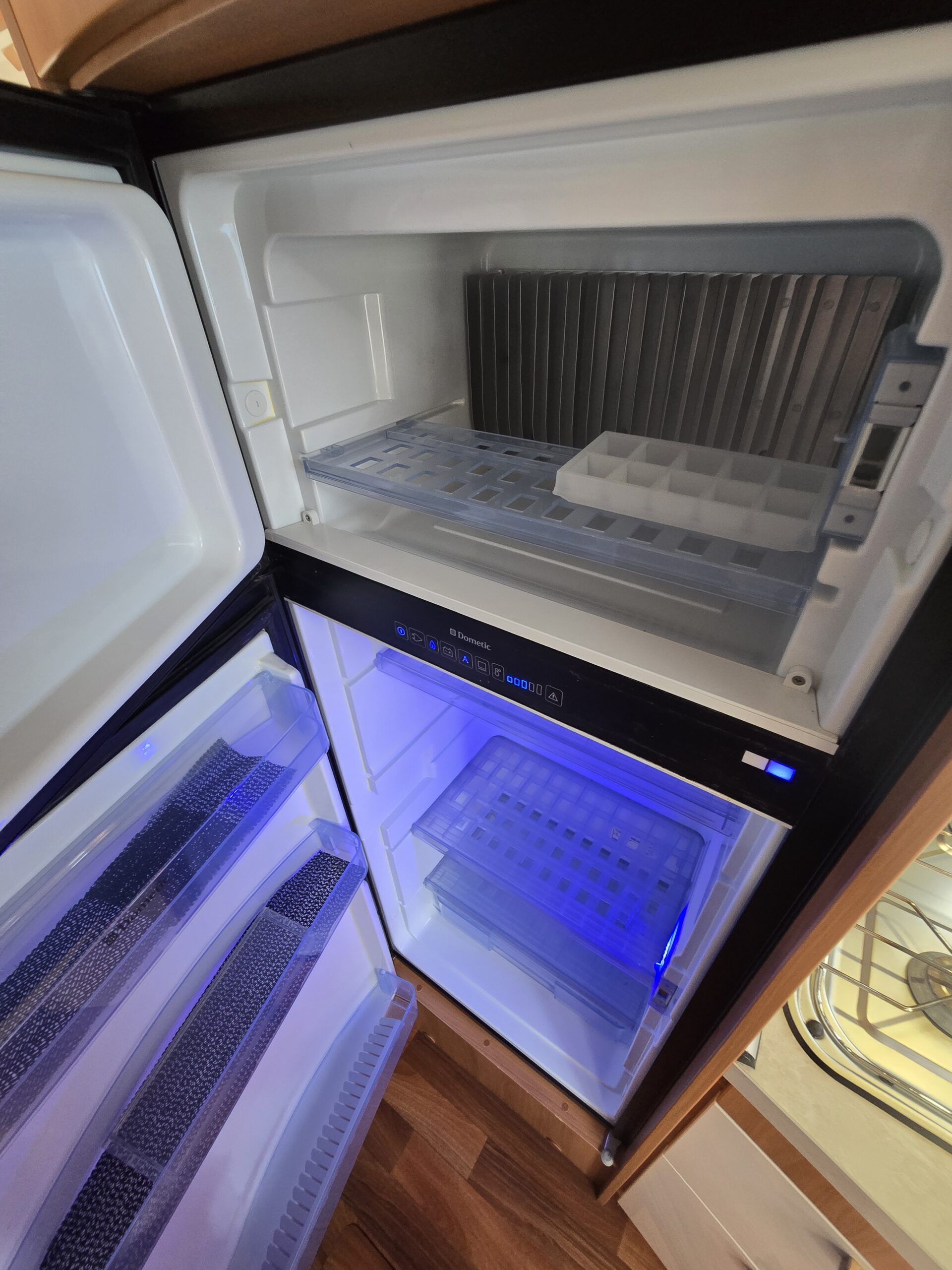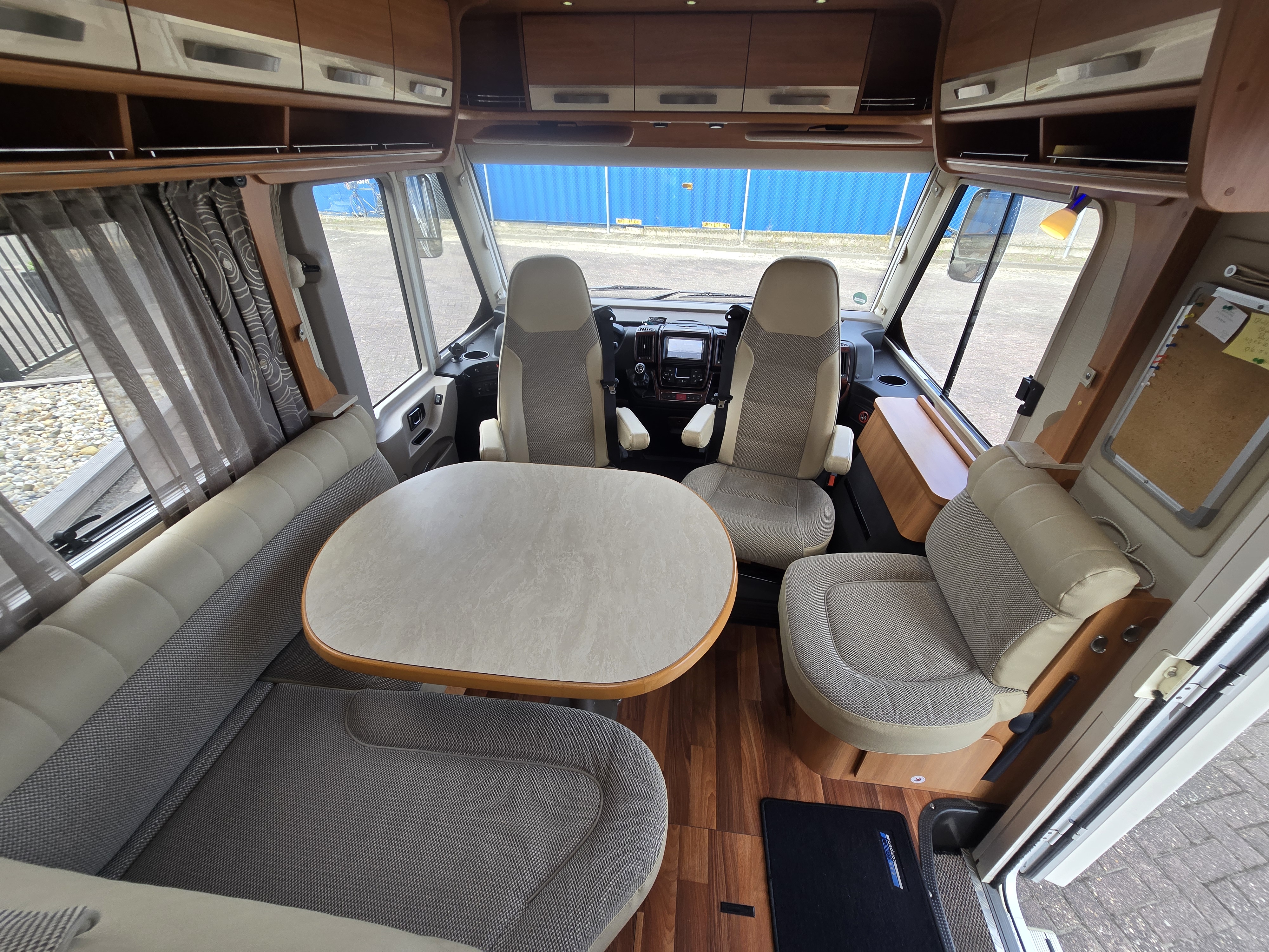 U kunt gezellig plaatsnemen in de praktische standaardzit, die ook kan worden omgebouwd tot slaapplaats. De keuken is in het midden van de camper geplaatst en beschikt over een 3-pits kooktoestel en gootsteen met kraan. Een ingebouwde boiler voorziet u van warm water. De koelkast met vriescompartiment is ruim genoeg voor al uw etenswaren.