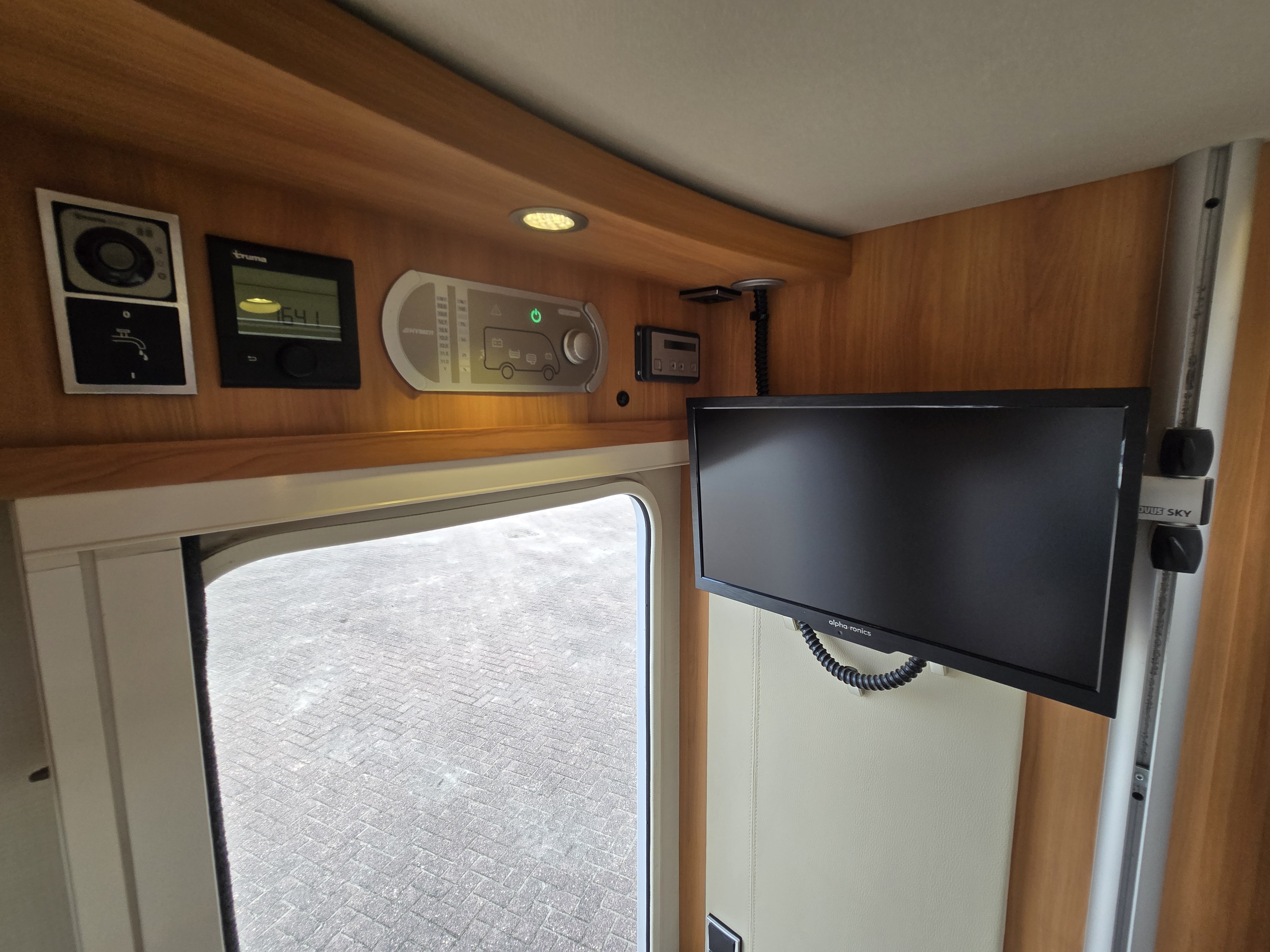 Deze camper is voorzien van een televisie zodat u ook tijdens uw vakantie televisie kunt kijken. Om TV kijken via de satelliet mogelijk te maken, is de camper reeds voorzien van een schotelantenne. Door de hordeur, waarmee deze camper is uitgerust, houdt u vliegen en andere insecten buiten de deur. Met de aanwezige zonnepanelen produceert u zelf schone energie. U bespaart zo in de kosten en u bent ook nog eens duurzaam bezig. Het zijn de details die deze camper verder verrassend compleet maken. Denk hierbij aan de vaste afvalwatertank, de veiligheidssloten, de buitenlamp, de omvormer, de lichtmetalen velgen en de rookmelder.