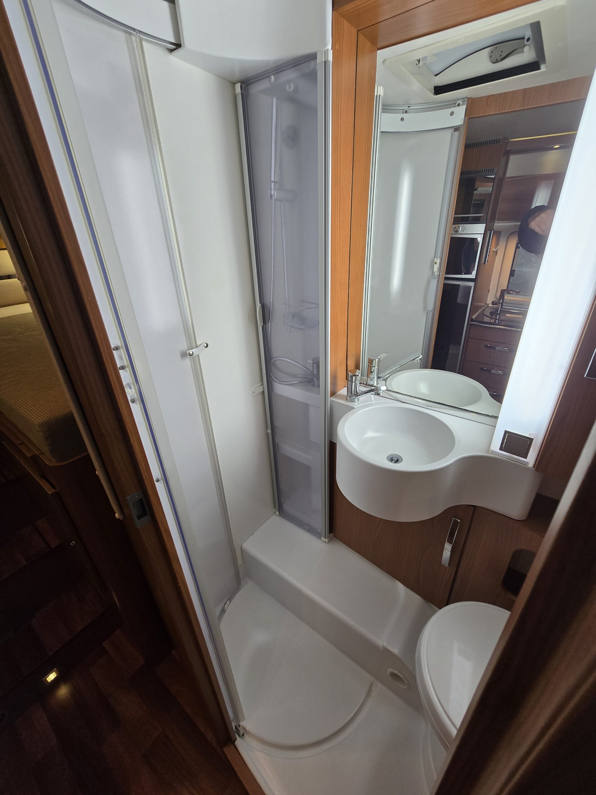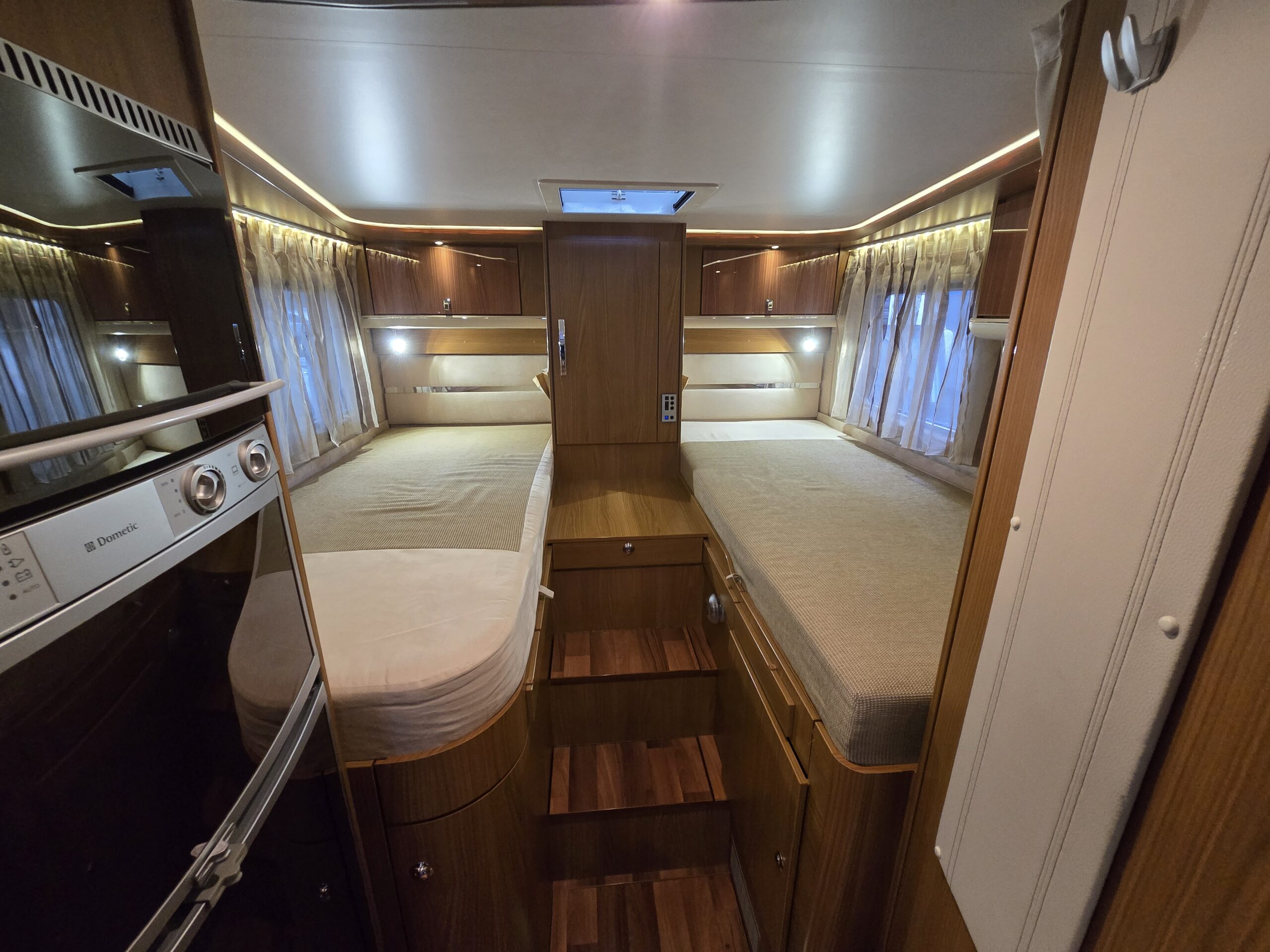De aparte bedden waarmee de camper is uitgerust bieden een ruime slaapplek aan 2 personen. Aan slaapcomfort zal het u in deze camper, die is voorzien van lattenbodems en traagschuimmatrassen, zeker niet ontbreken. Naast het slaapgedeelte bevindt zich ook de douchegelegenheid.