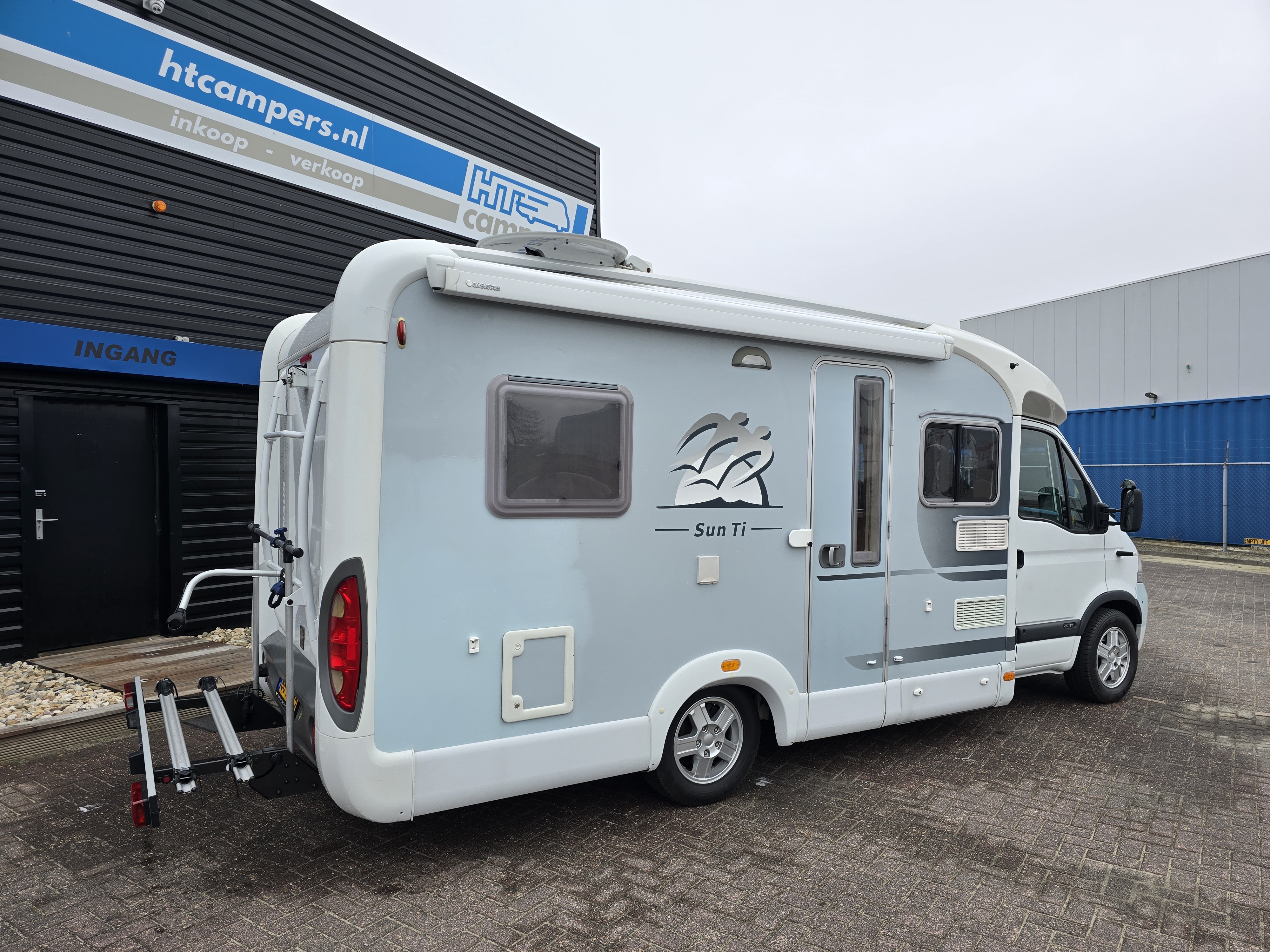 Deze praktische Knaus Sun Ti is gebouwd in het jaar 2008. De camper heeft een lengte van 6 meter 50, mag worden bestuurd met een B-rijbewijs en biedt een slaapplaats aan 4 personen. Door de aanwezigheid van het royale, zonnige panoramadadak is er altijd veel daglicht in de camper aanwezig. Uw fietsen kunt u makkelijk meenemen op het fietsenrek dat op deze camper is gemonteerd.