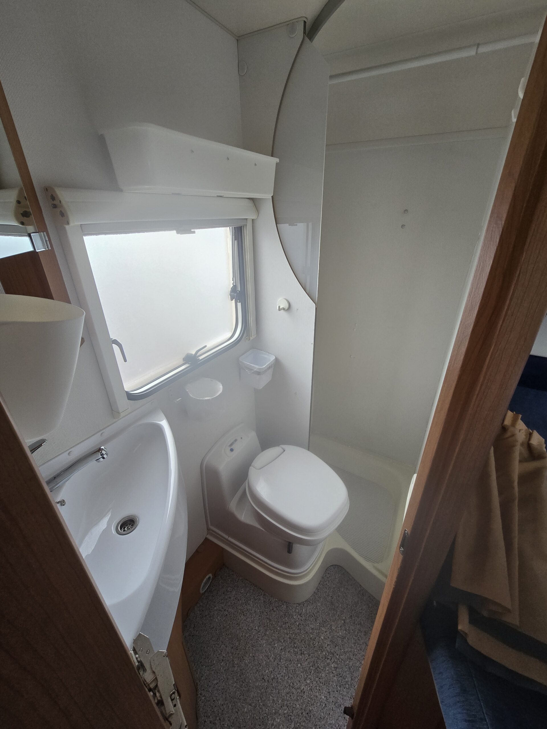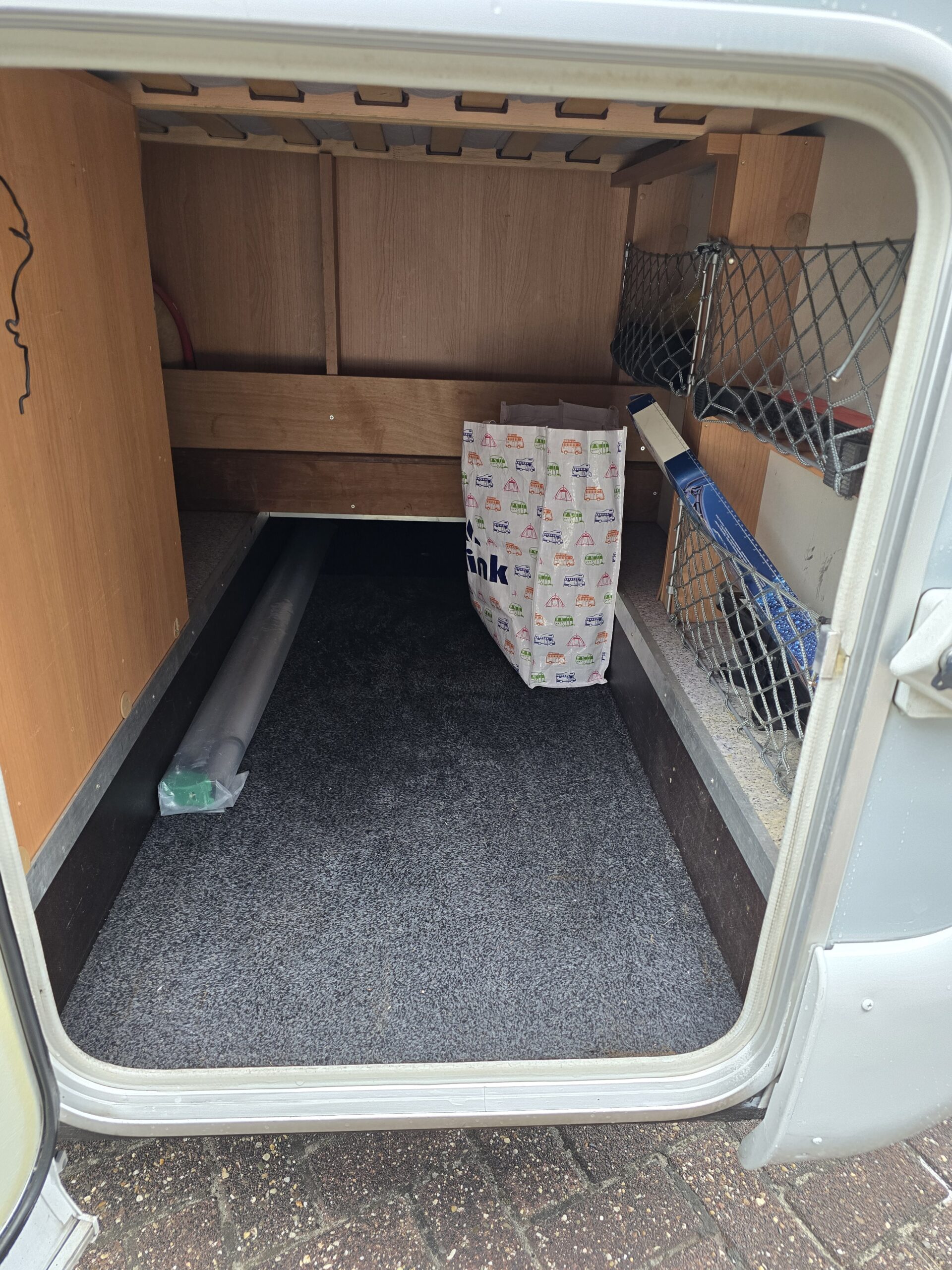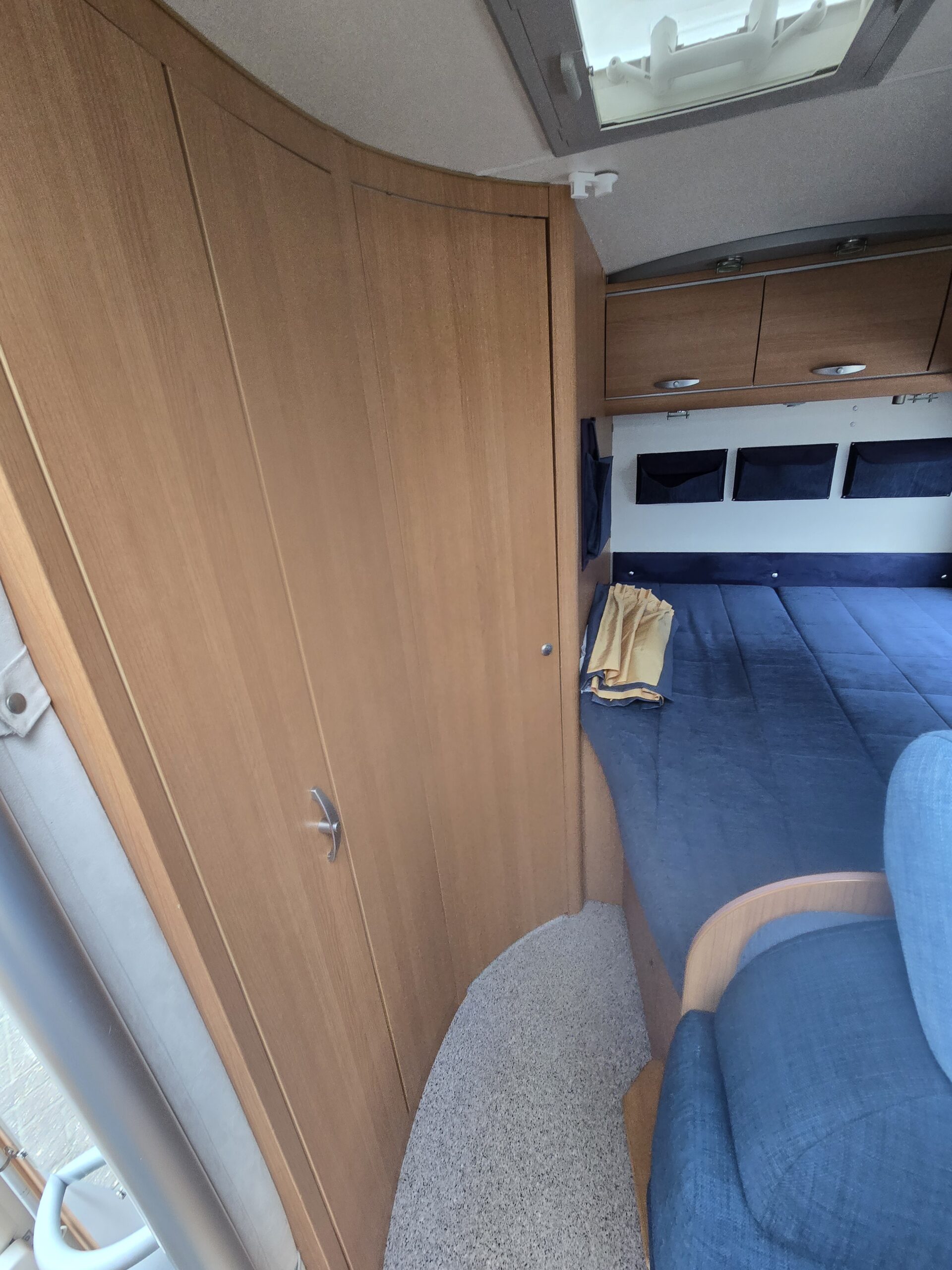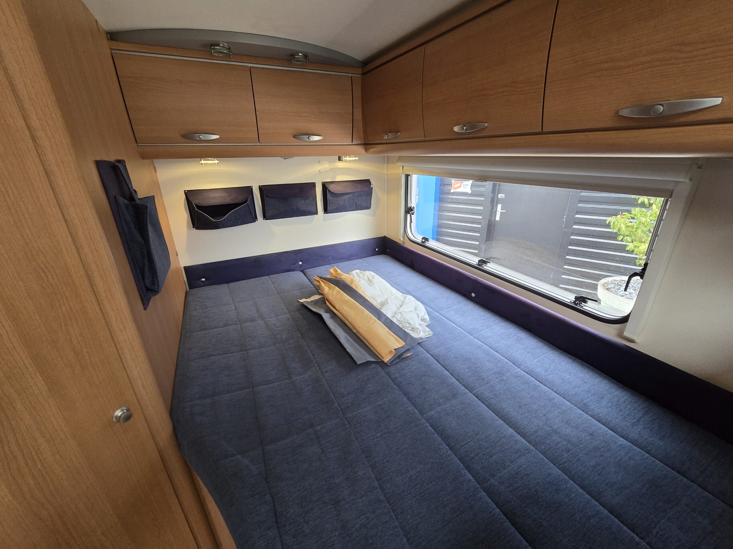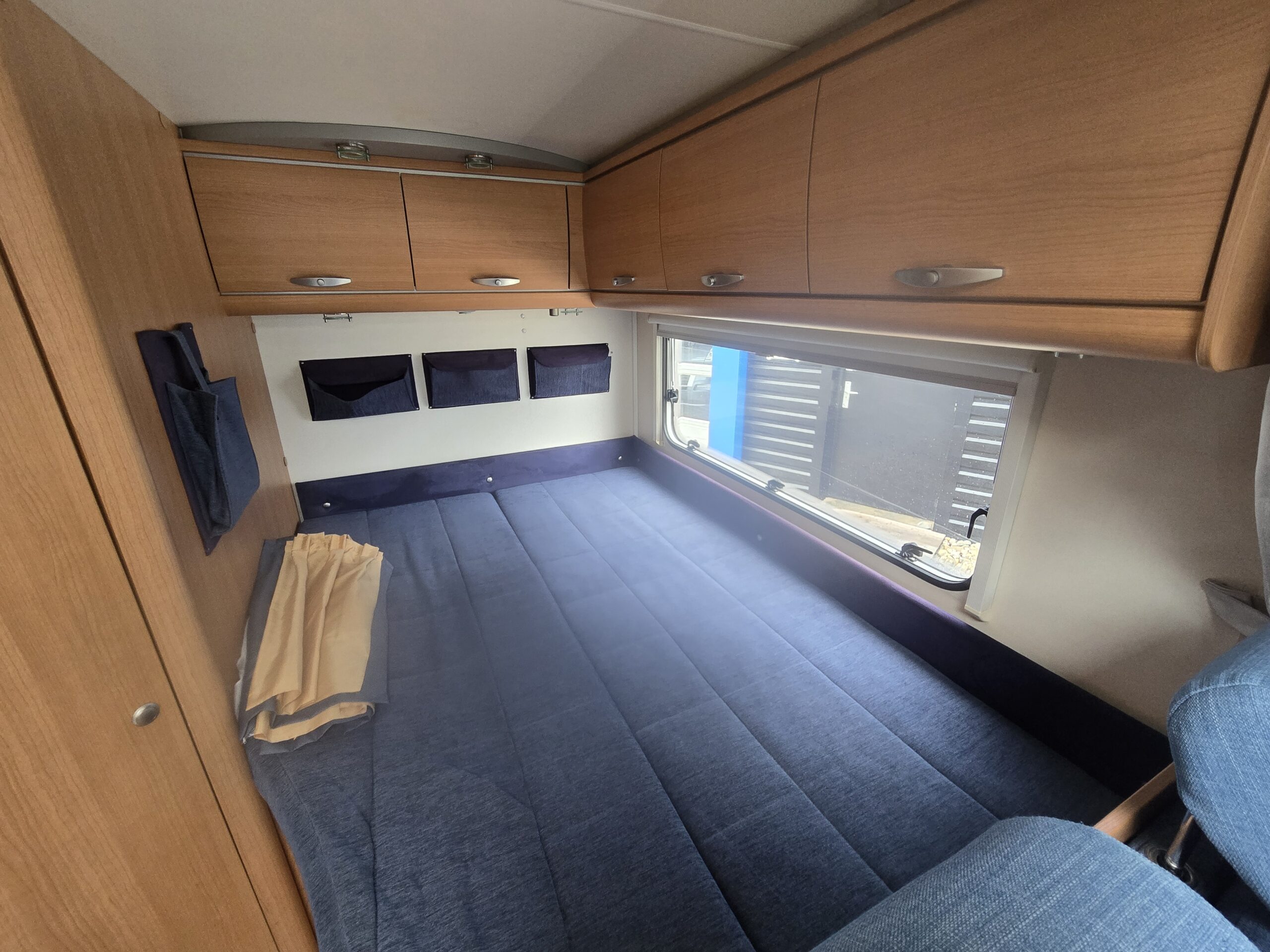 Het in de lengte van de camper geplaatste bed biedt voldoende ruimte voor 2 personen. Aan slaapcomfort zal het u in deze camper, die is voorzien van lattenbodems en traagschuimmatrassen, zeker niet ontbreken. Naast het slaapgedeelte bevindt zich ook de douchegelegenheid.
