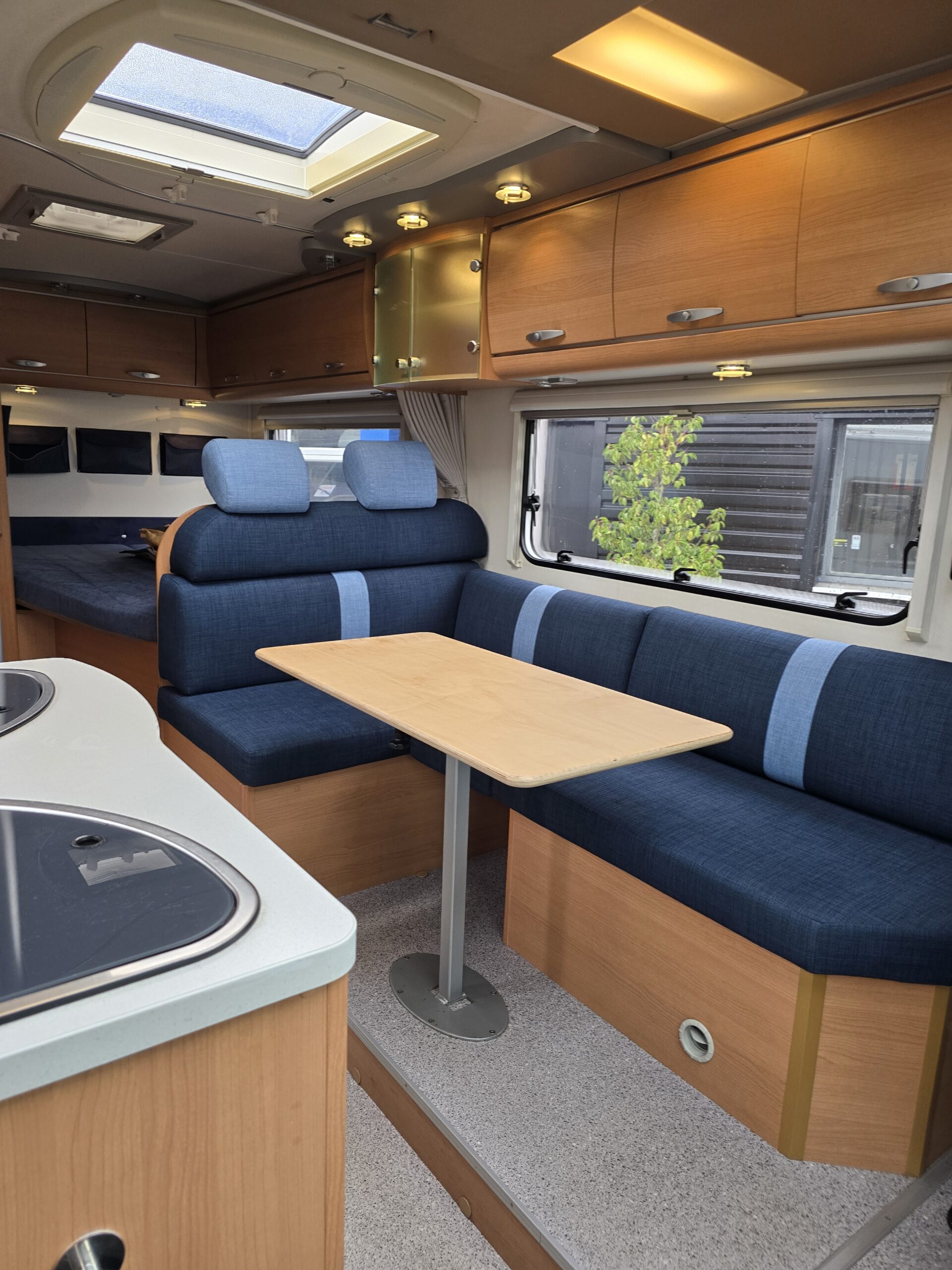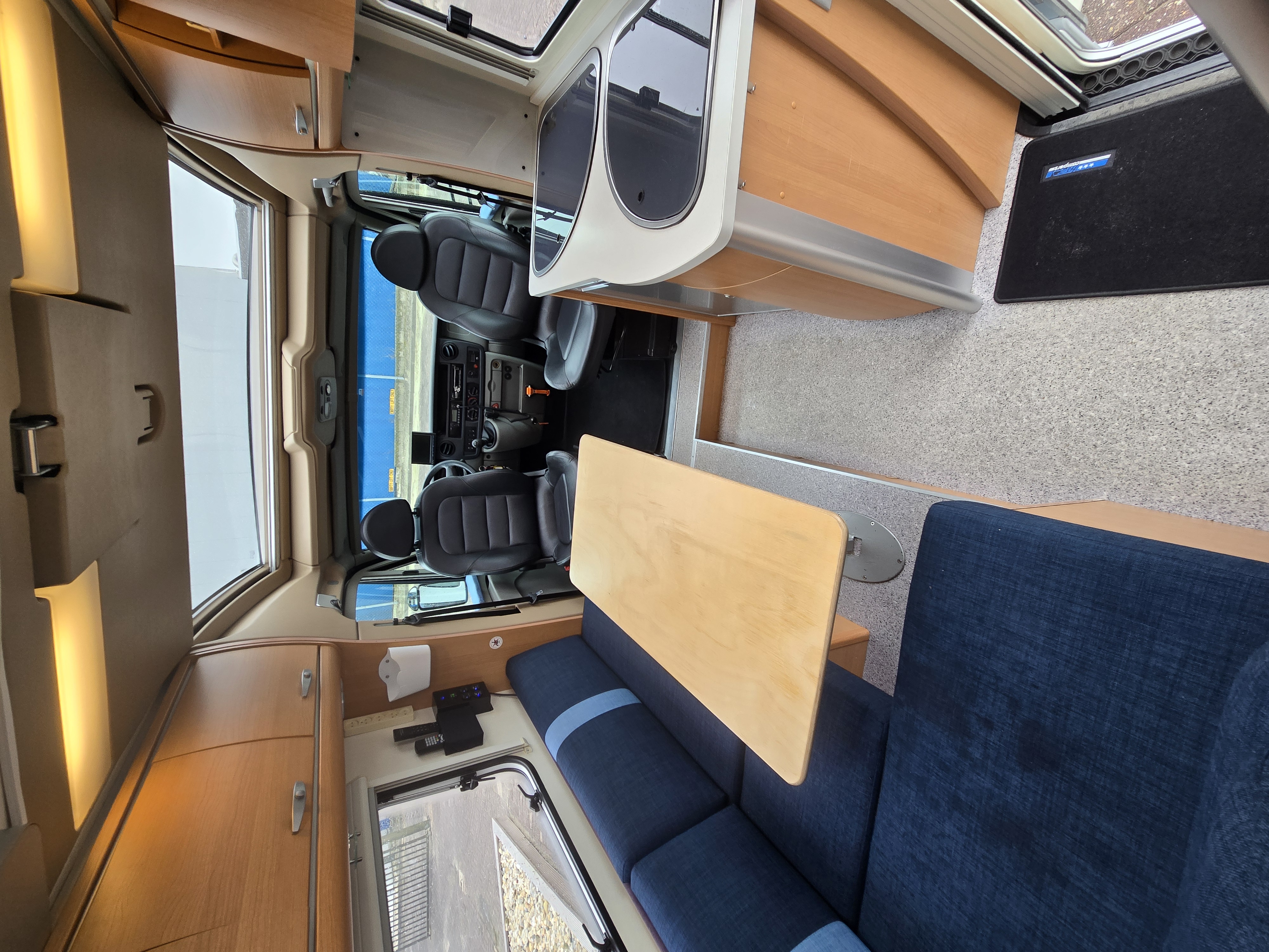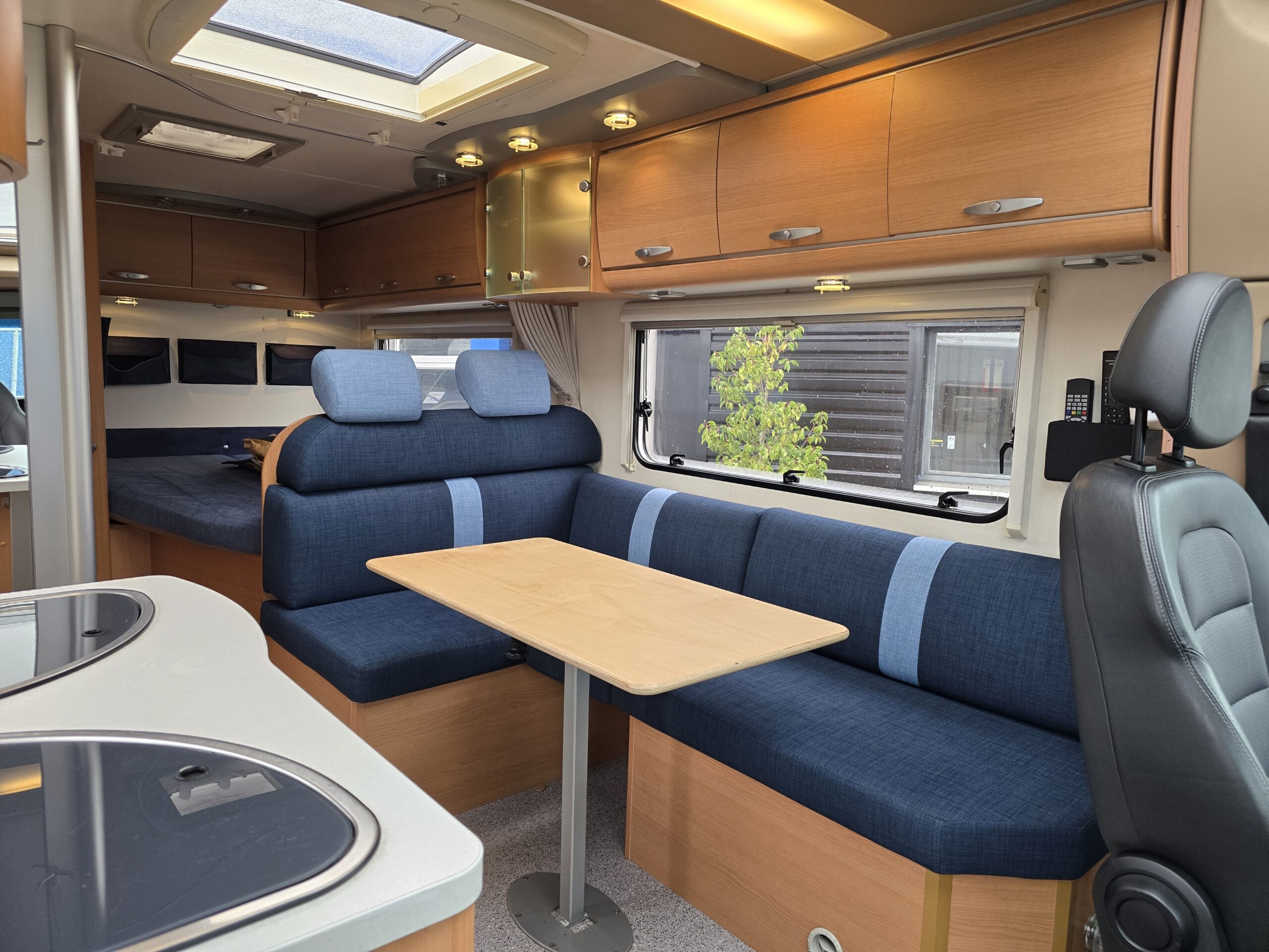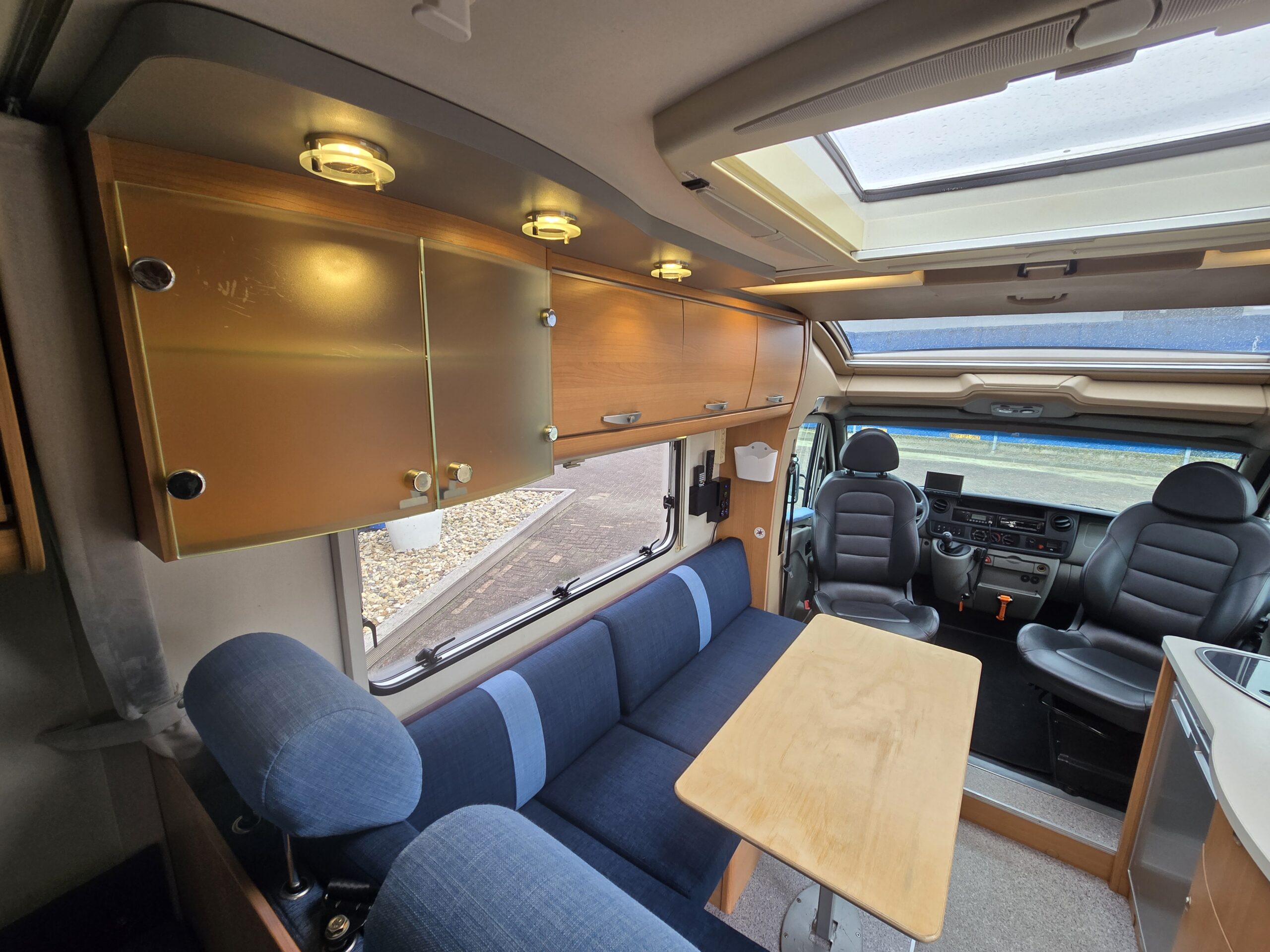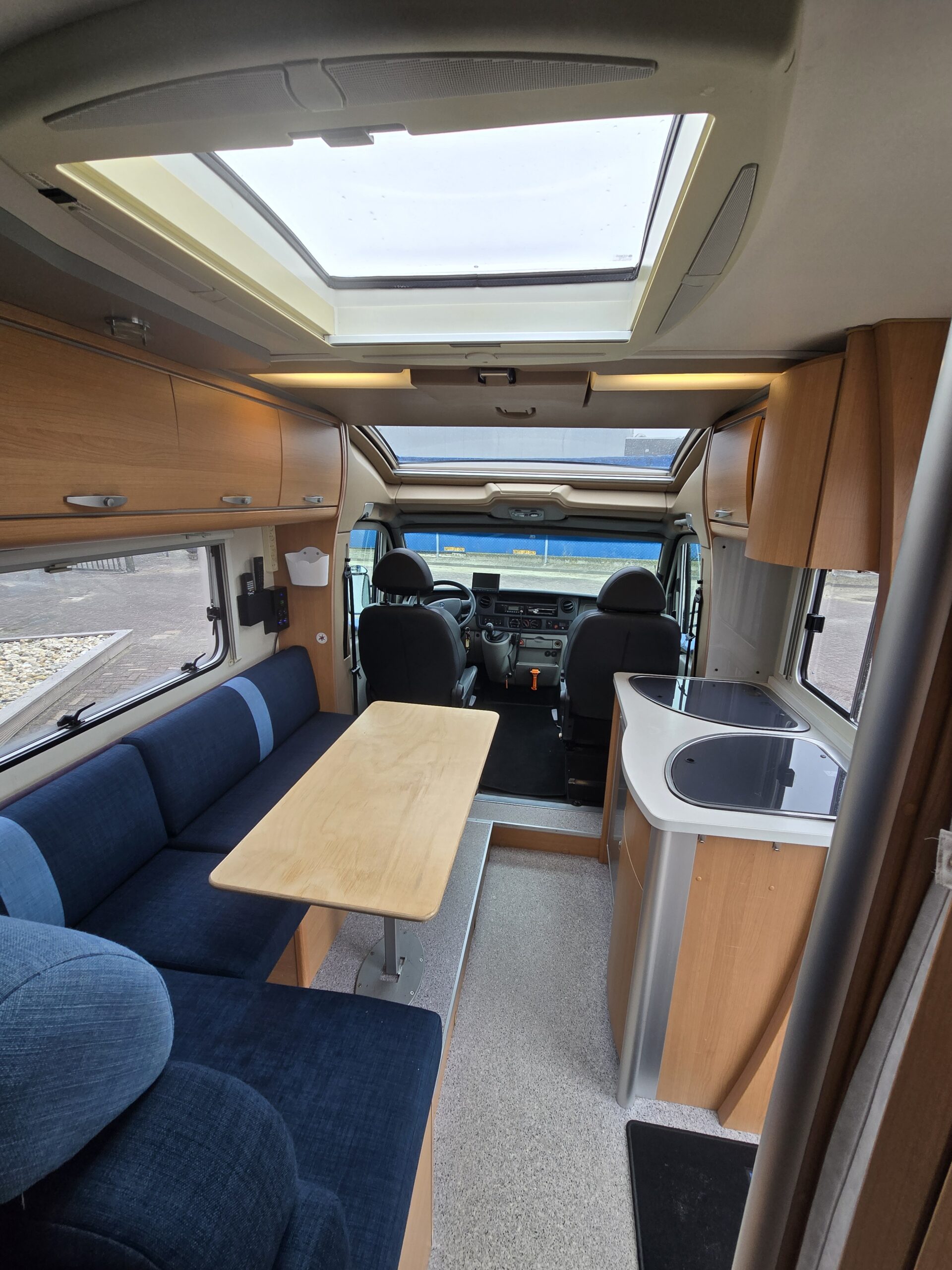 De standaardzit biedt niet alleen de nodige zitgelegenheid, maar kan ook worden omgebouwd tot slaapplaats. De keuken is in het midden van de camper gemonteerd en beschikt onder meer over een 3-pits kooktoestel en gootsteen met kraan. Een ingebouwde boiler voorziet u van warm water. De koelkast met vriesvak biedt voldoende ruimte voor heel uw voorraad.