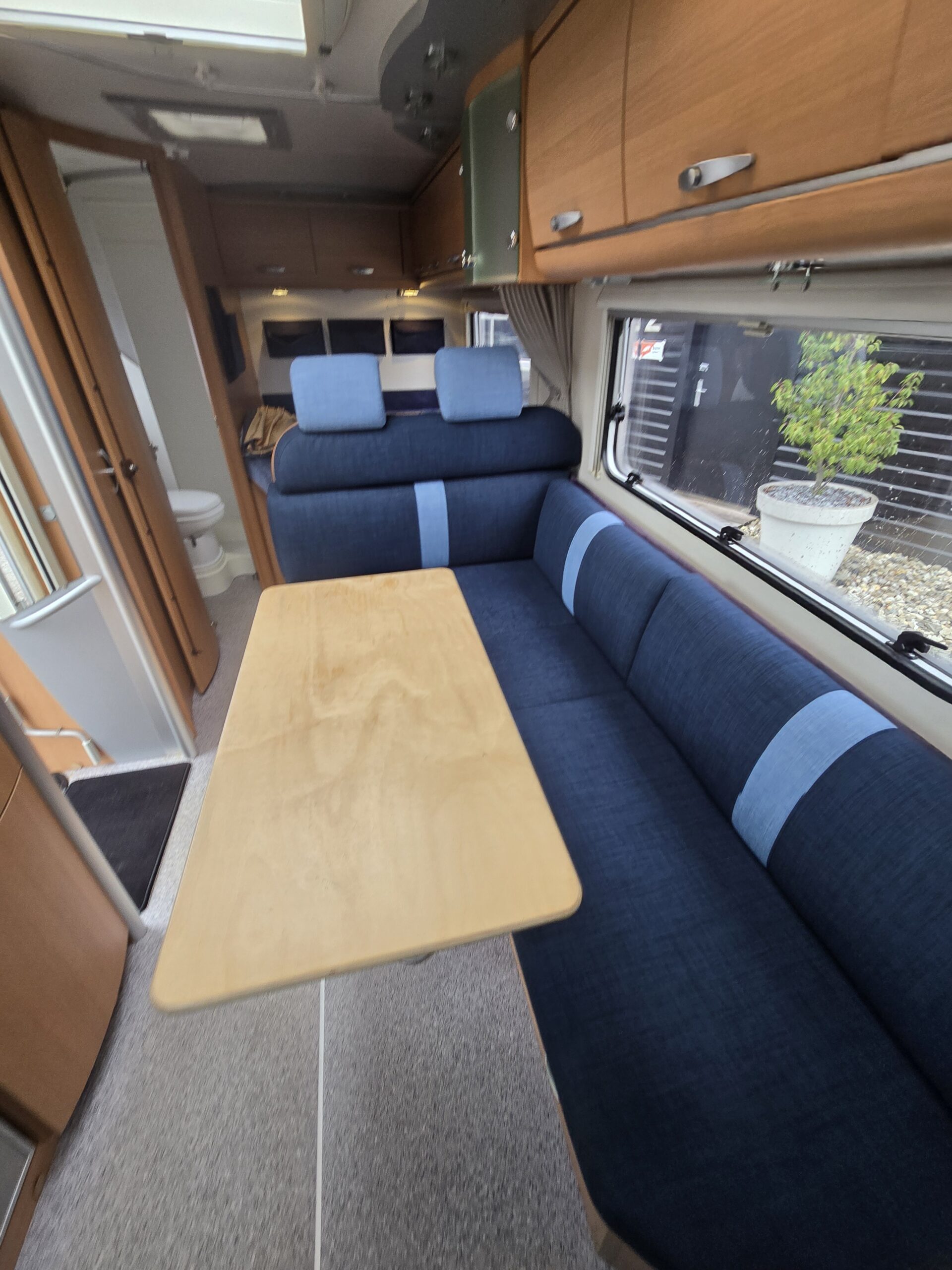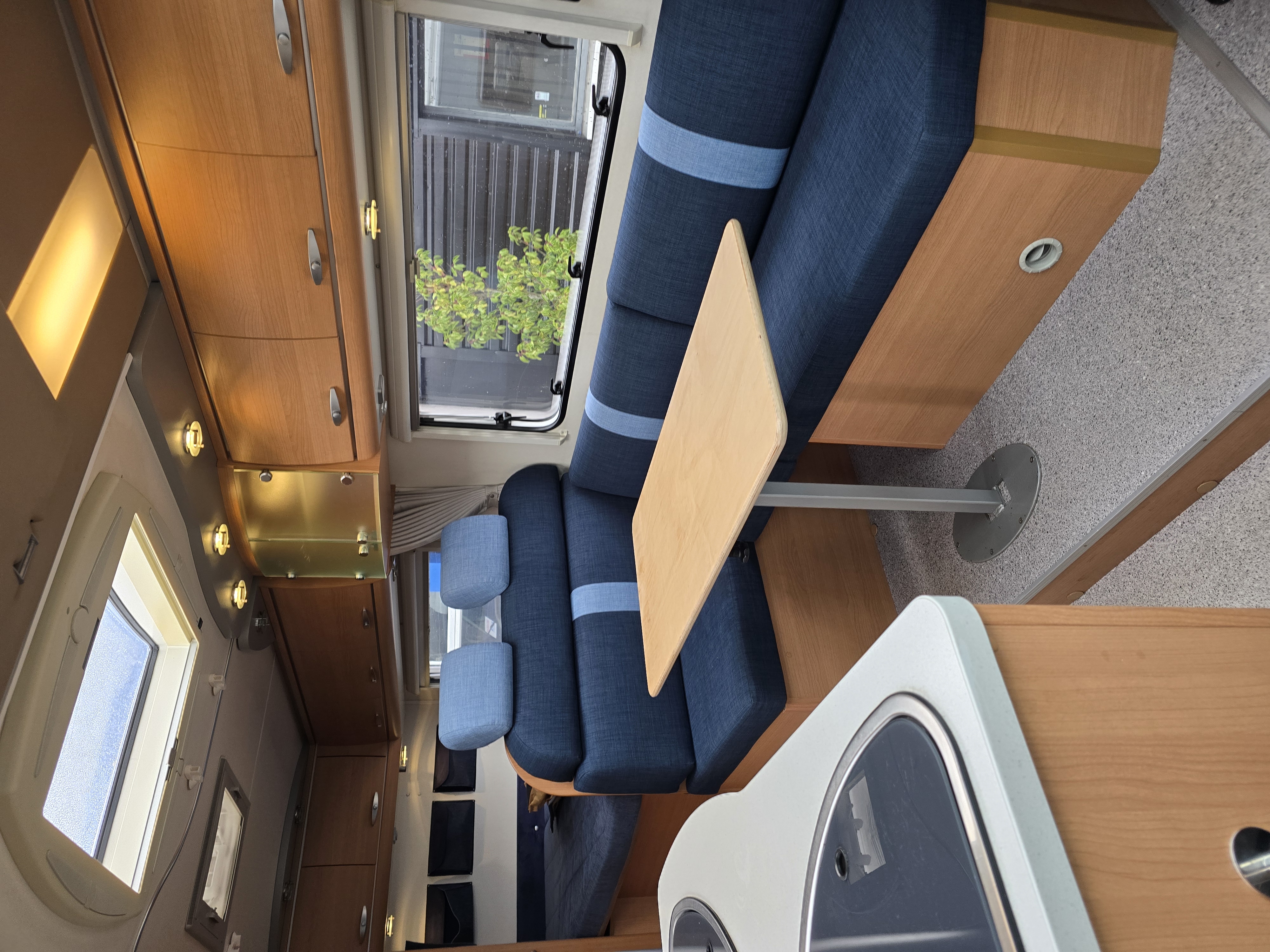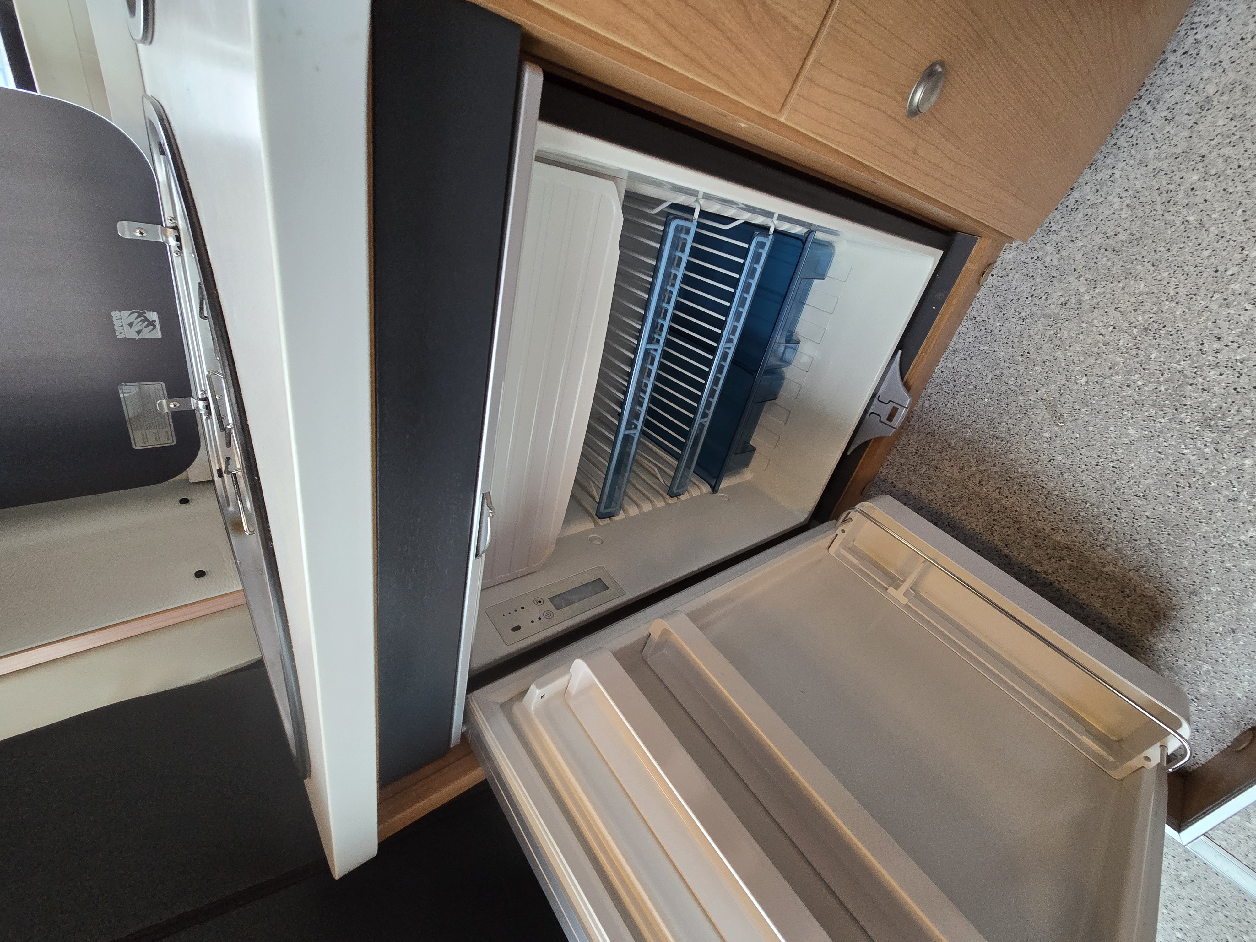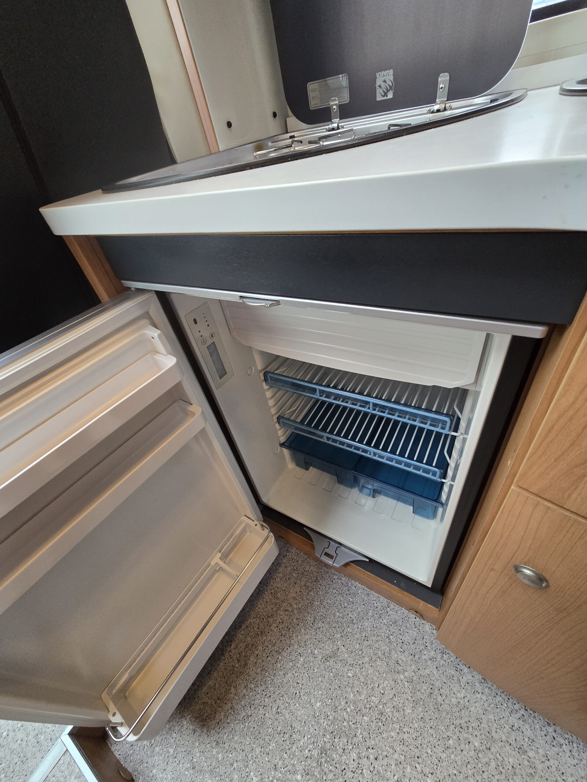 De standaardzit biedt niet alleen de nodige zitgelegenheid, maar kan ook worden omgebouwd tot slaapplaats. De keuken is in het midden van de camper gemonteerd en beschikt onder meer over een 3-pits kooktoestel en gootsteen met kraan. Een ingebouwde boiler voorziet u van warm water. De koelkast met vriesvak biedt voldoende ruimte voor heel uw voorraad.