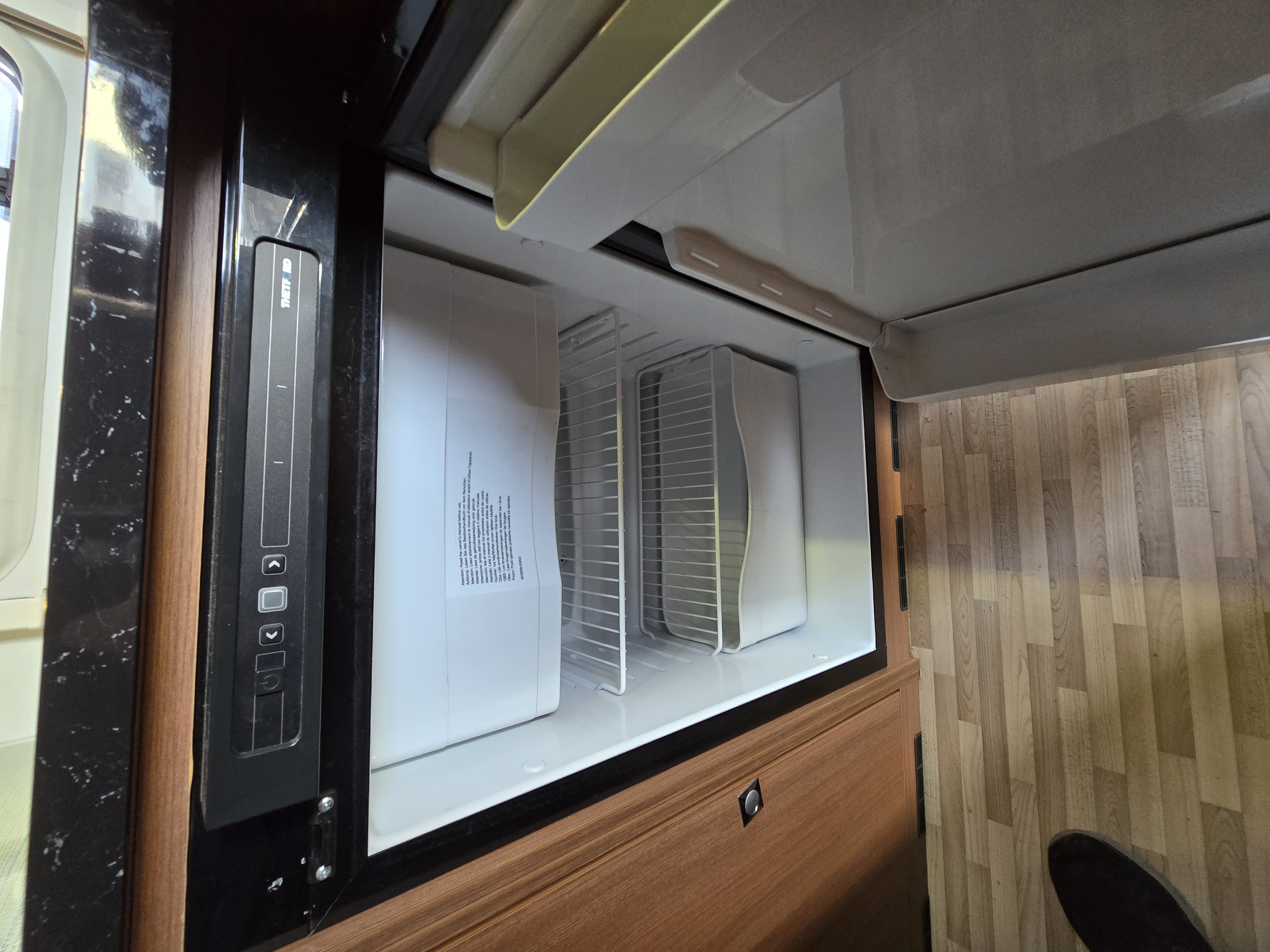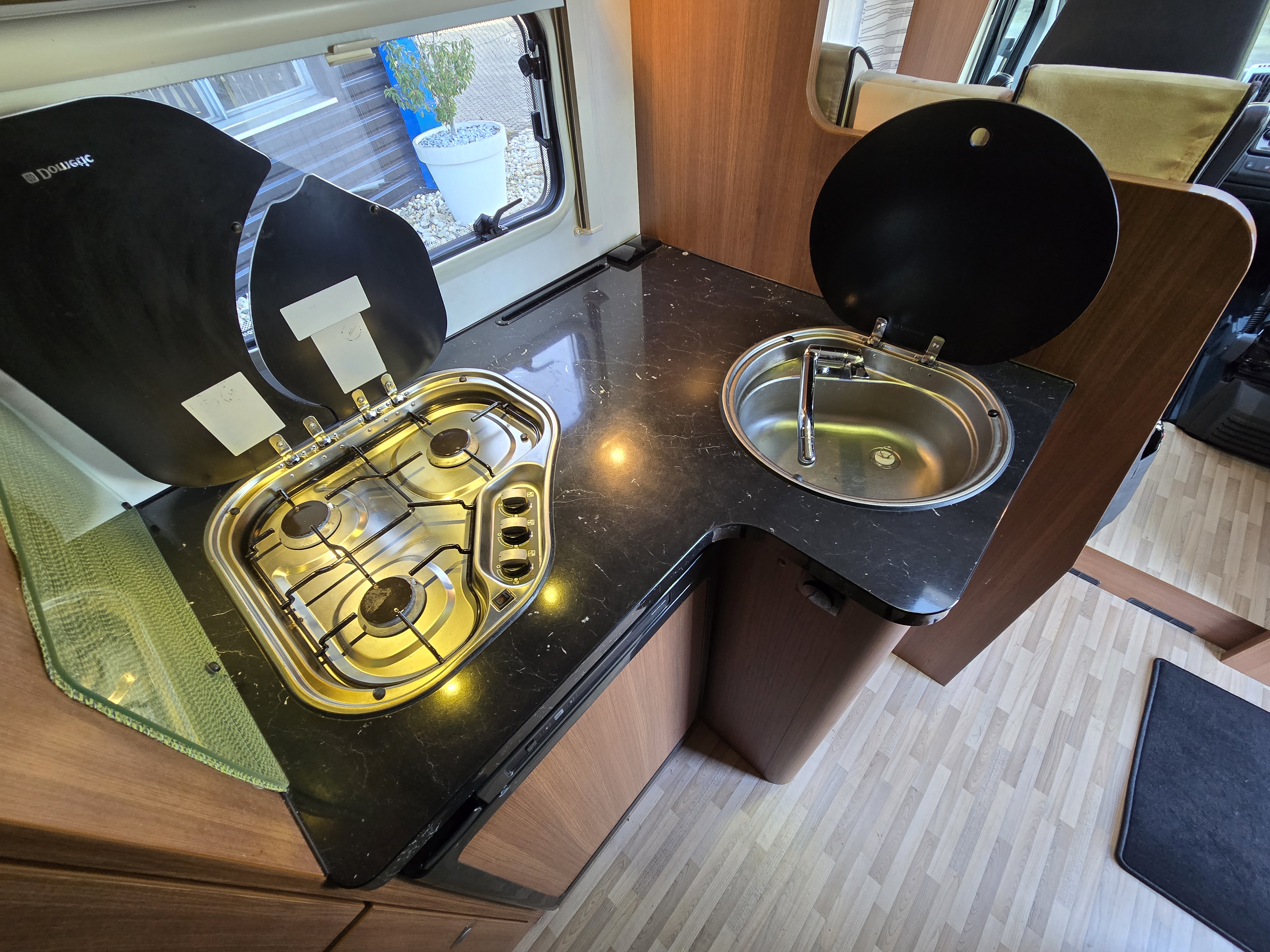 U kunt gezellig plaatsnemen in de praktische standaardzit, die ook kan worden omgebouwd tot slaapplaats. Centraal in de camper bevindt zich de middenkeuken, uitgerust met een spoelbak, kraan en 3-pits kooktoestel. Er is een boiler aanwezig, die u van warm water voorziet. De koelkast met vriescompartiment is ruim genoeg voor al uw etenswaren.