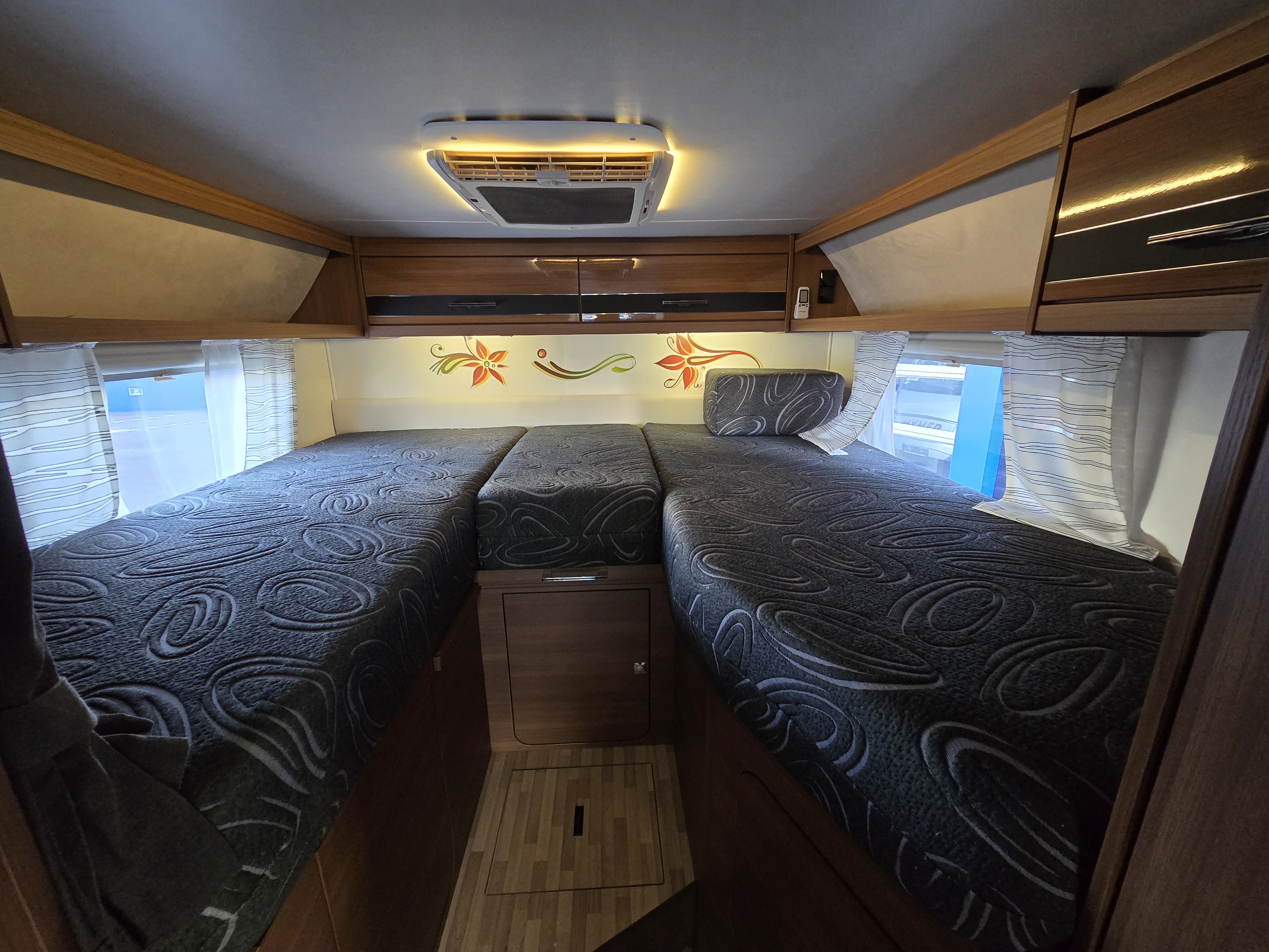 De twee enkele bedden zorgen voor een gemakkelijke instap. Dankzij de traagschuimmatrassen en lattenbodems kunt u genieten van extra comfortabele bedden. Wilt u zich onderweg opfrissen? Dat kan gezien de camper voorzien is van een douchecabine.