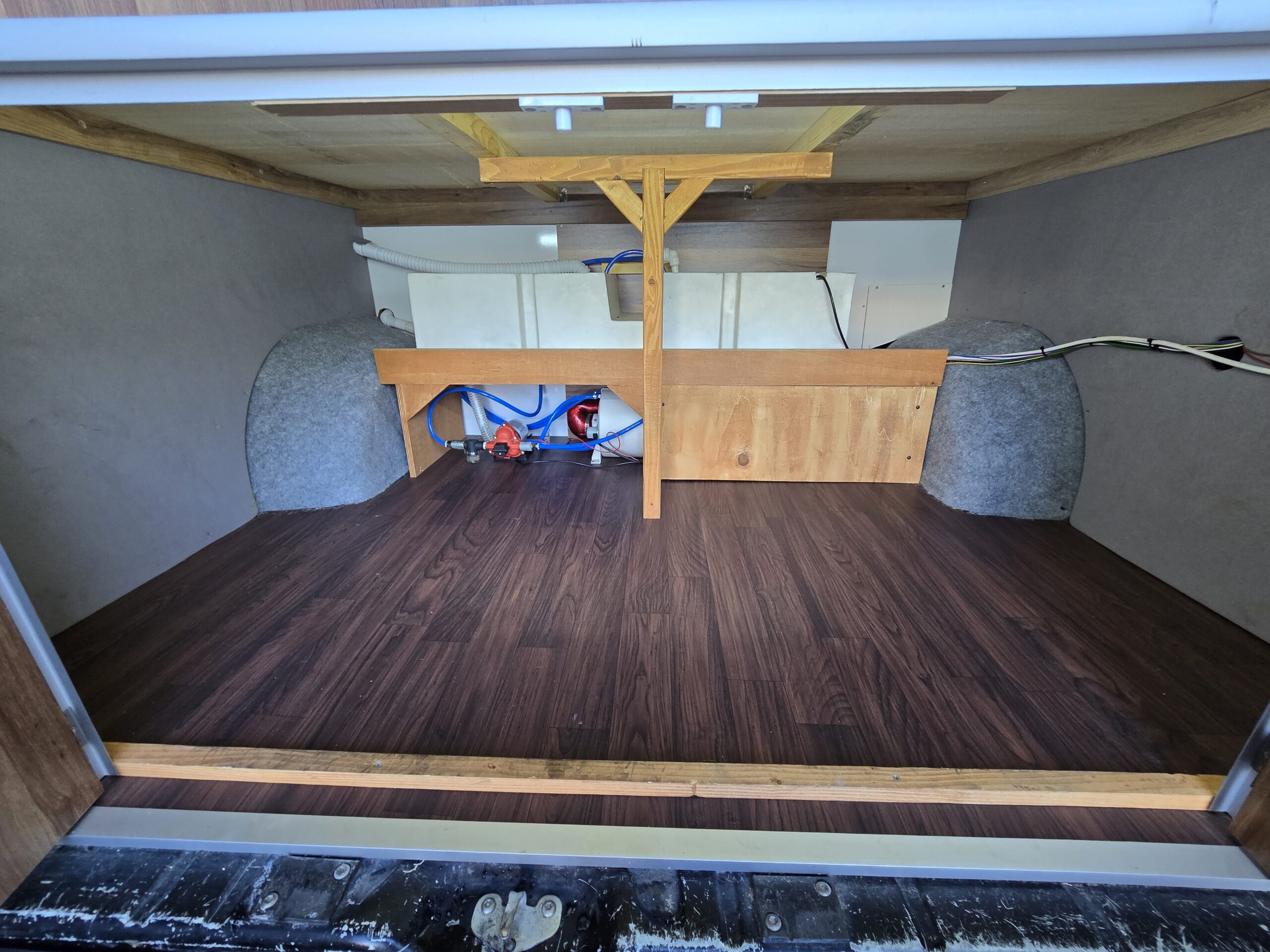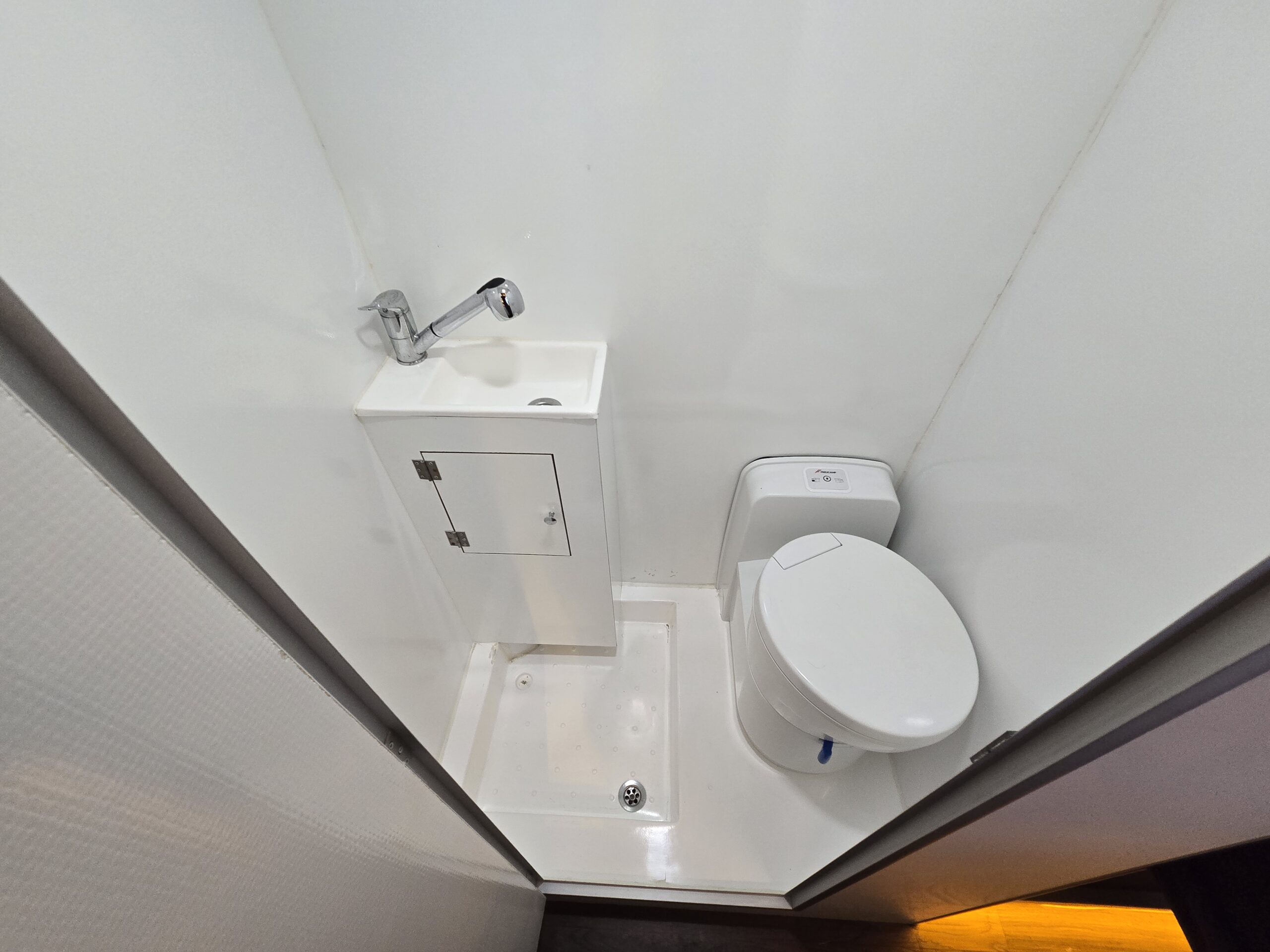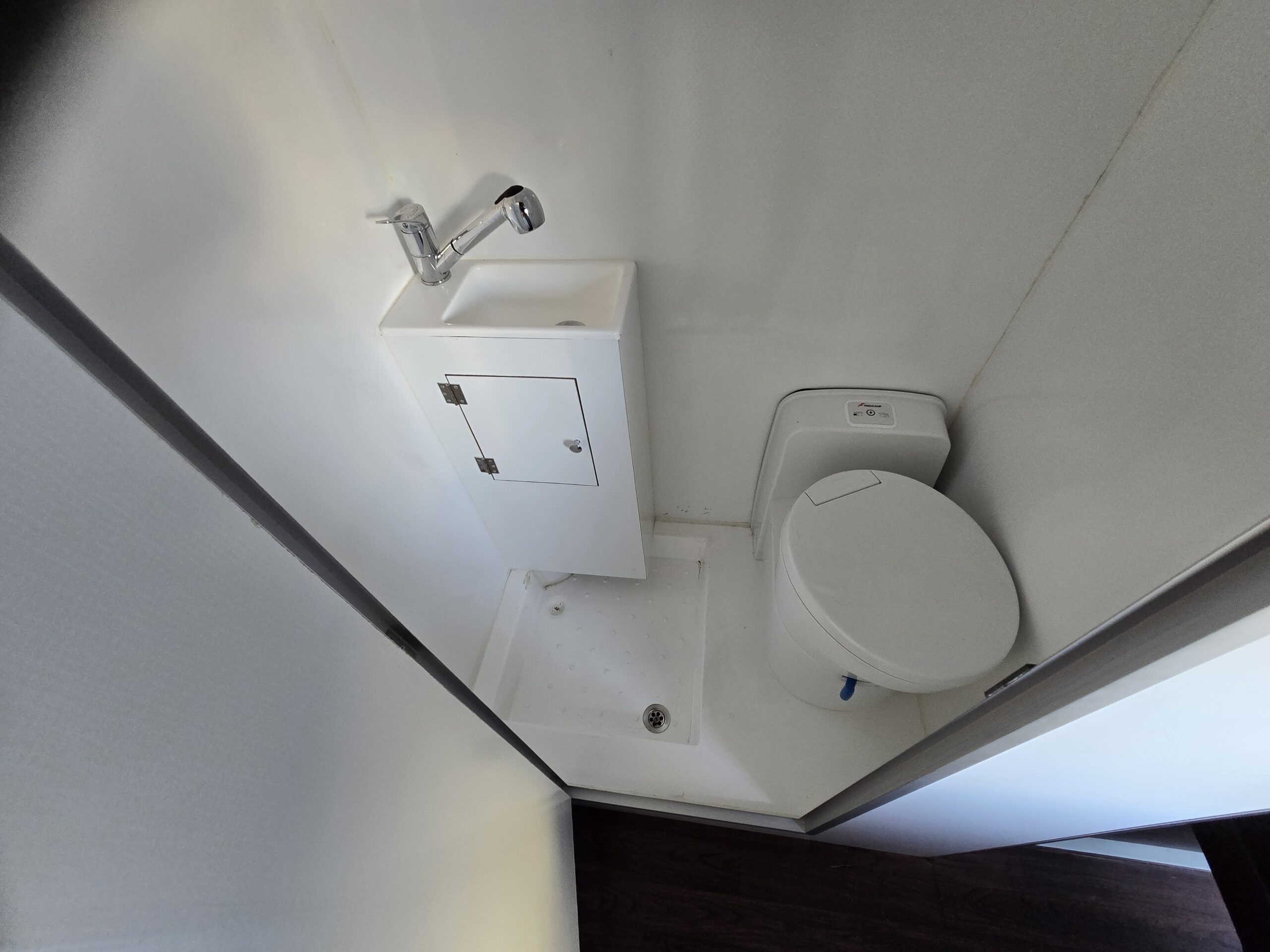 Om het u aan niets te laten ontbreken, zijn de bedden voorzien van zowel lattenbodems als matrassen. In de camper kunt u ook douchen. Er bevindt zich een doucheruimte met toilet en wasbakje naast het slaapgedeelte.